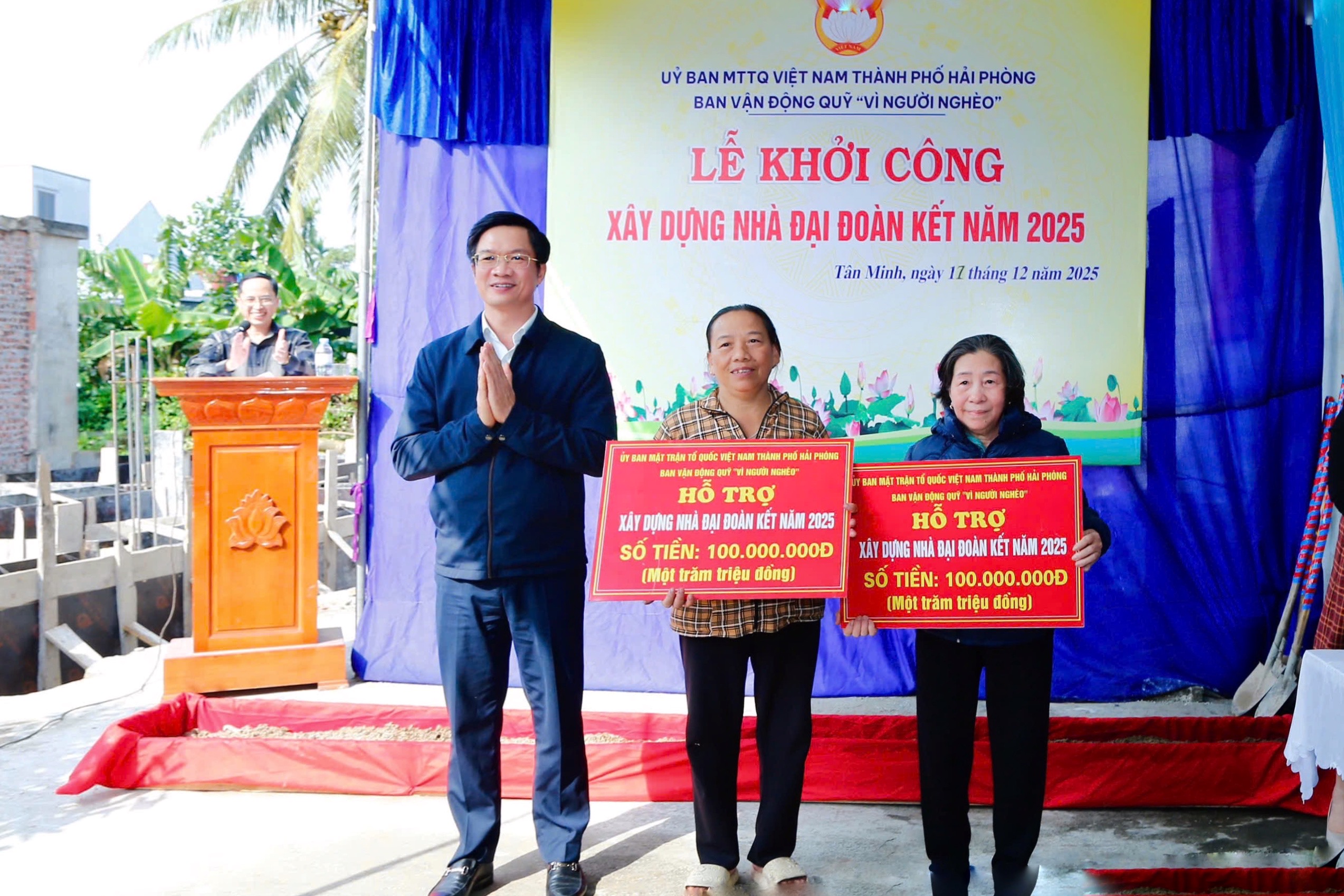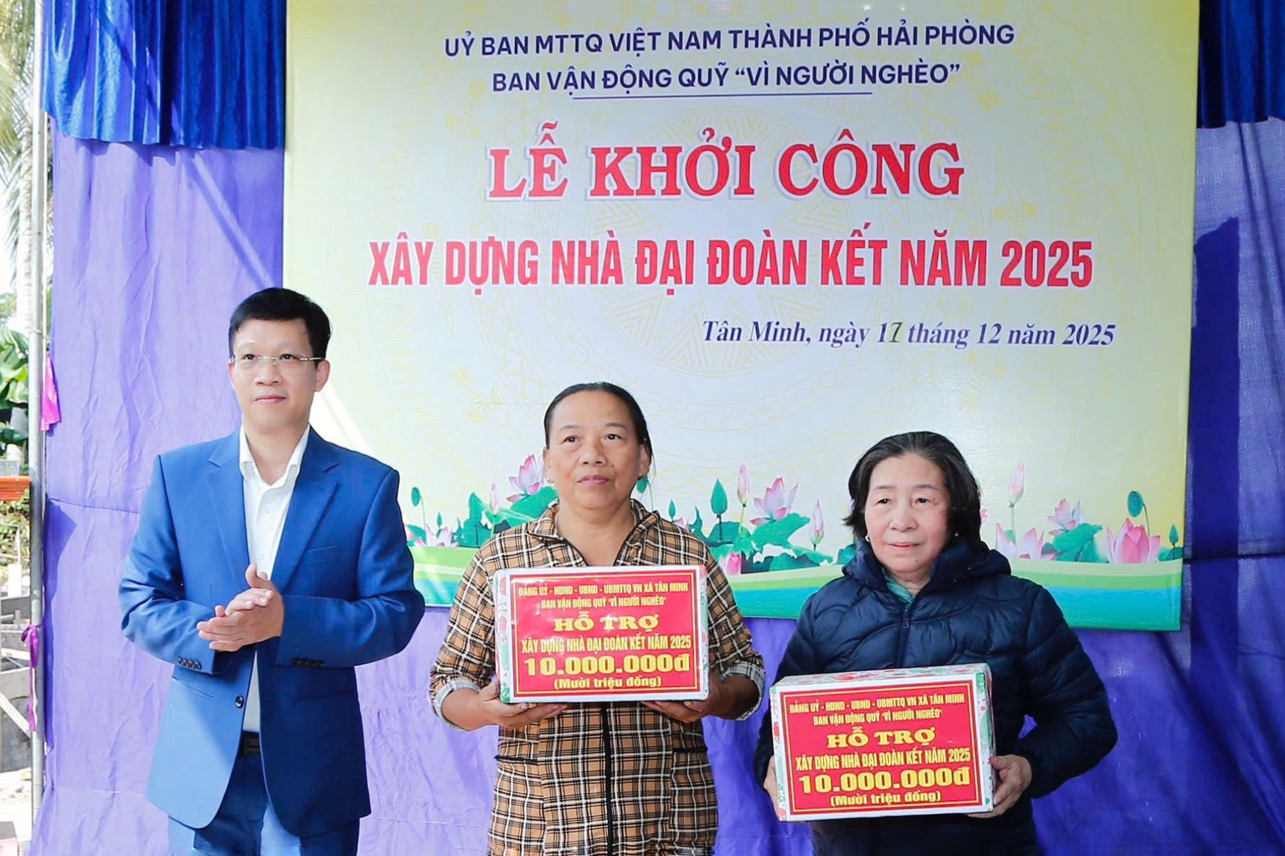 (Haiphong.gov.vn) – Đồng chí Phạm Văn Lập – Phó Bí thư Thành ủy, Chủ tịch Ủy ban MTTQ Việt Nam thành phố vừa dự và chỉ đạo Hội nghị kiểm điểm, đánh giá xếp loại chất lượng năm 2025 của Ban Thường vụ Đảng ủy xã Tân Minh, đồng thời tham dự Lễ khởi công xây dựng nhà Đại đoàn kết cho các hộ gia đình có hoàn cảnh khó khăn trên địa bàn xã.