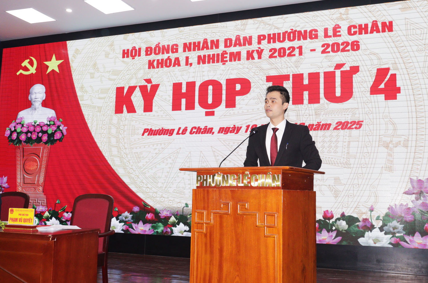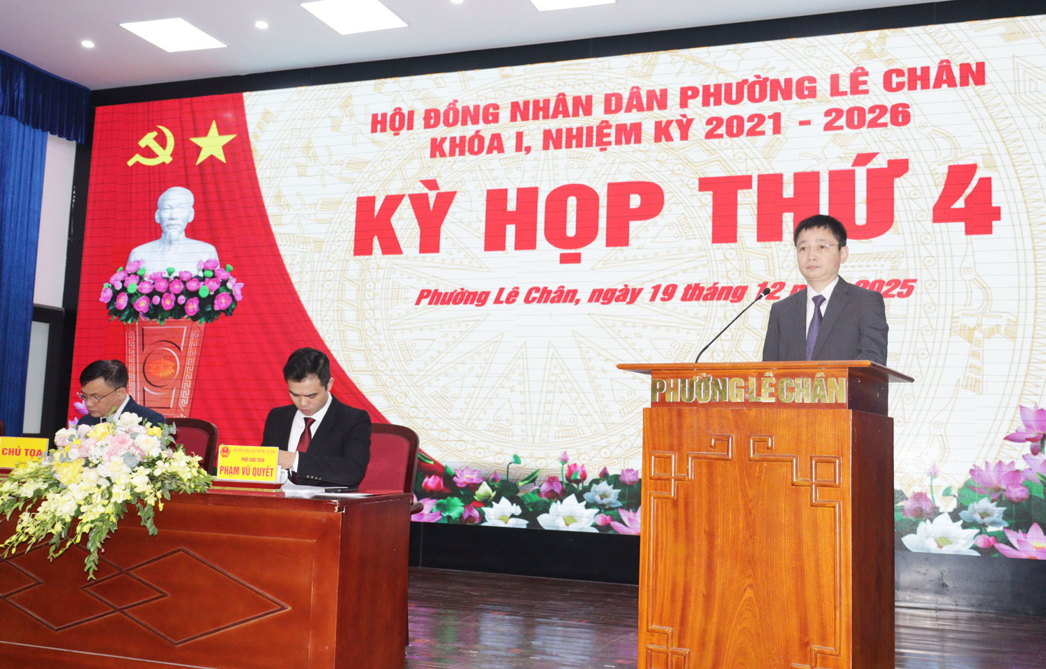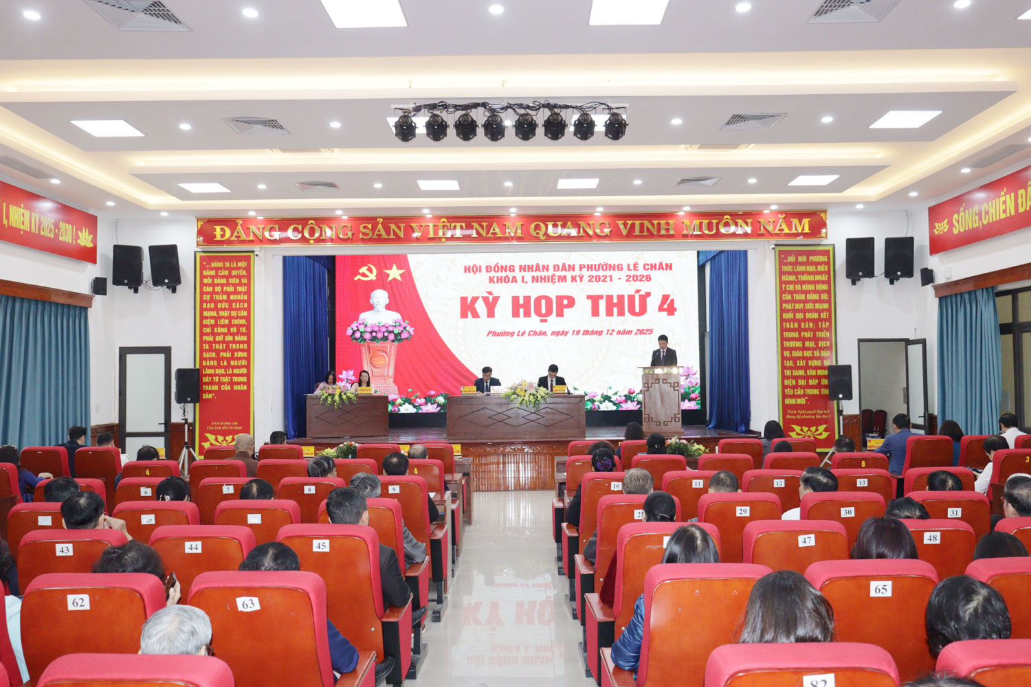 (Haiphong.gov.vn) - Ngày 19/12, HĐND phường Lê Chân khóa I, nhiệm kỳ 2021 - 2026 tổ chức Kỳ họp thứ 4 - Kỳ họp thường lệ cuối năm 2025 nhằm đánh giá tình hình thực hiện nhiệm vụ phát triển kinh tế - xã hội, quốc phòng - an ninh năm 2025; quyết định các mục tiêu, nhiệm vụ và giải pháp thực hiện năm 2026.
