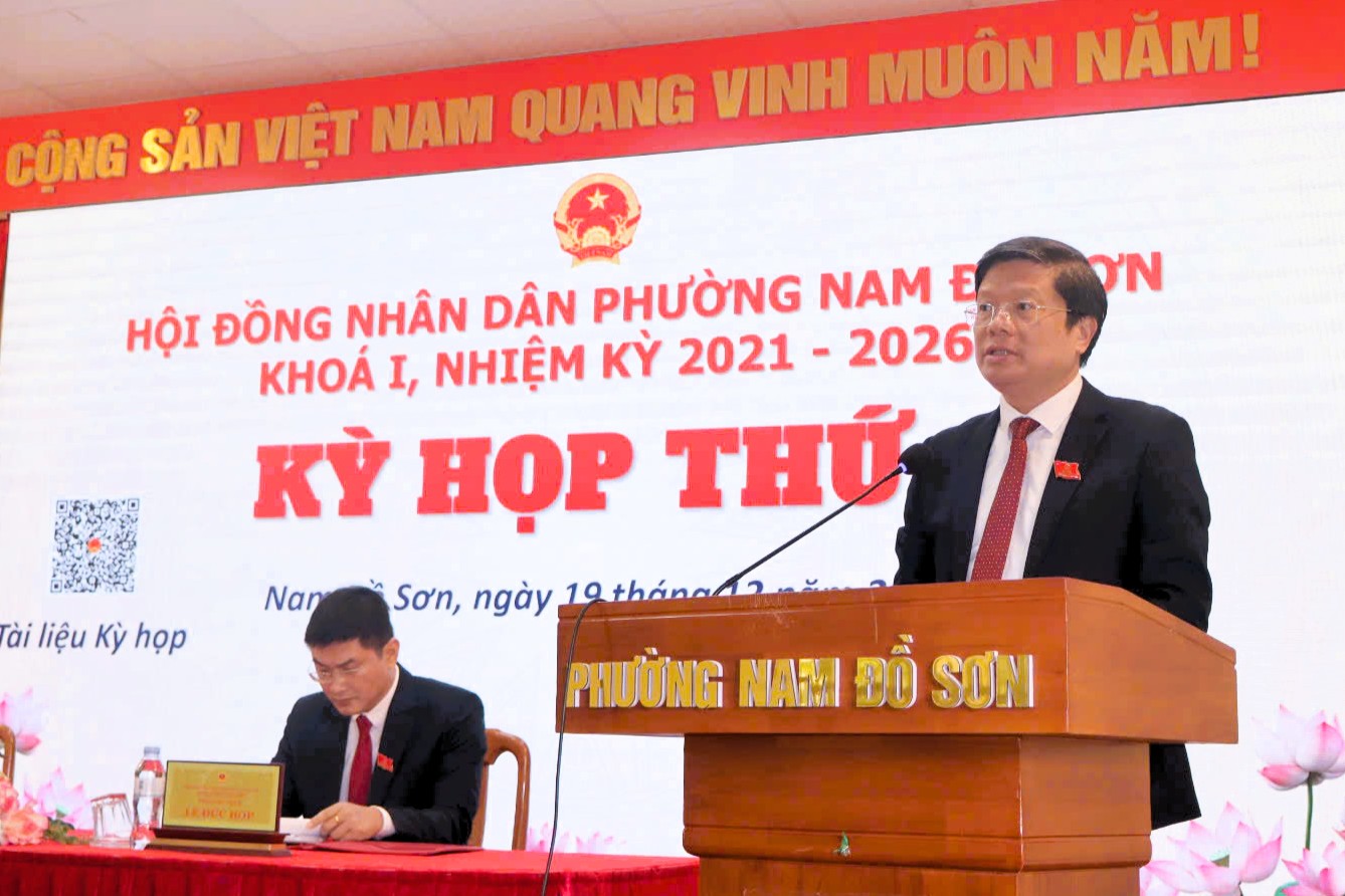 (Haiphong.gov.vn) - Sáng 19/12, HĐND phường Nam Đồ Sơn tổ chức Kỳ họp thứ 4 - Kỳ họp thường lệ cuối năm 2025 để xem xét, đánh giá, thông qua các nội dung thuộc thẩm quyền, theo luật định. Nội dung Kỳ họp được phát thanh trực tiếp trên hệ thống phát thanh của phường.