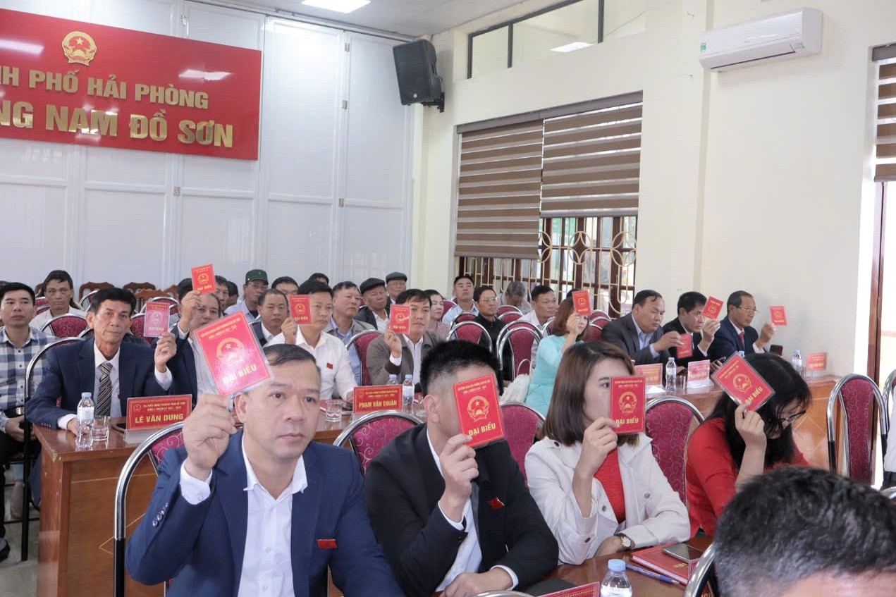 Đại biểu HĐND phường biểu quyết thông qua một số nội dung.Năm 2025, phường Nam Đồ Sơn đạt được những kết quả toàn diện trên các lĩnh vực, hoàn thành 17/17 chỉ tiêu thành phố giao. Nổi bật là, tổng thu ngân sách trên địa bàn đạt 585,5% kế hoạch; sản xuất nông nghiệp ổn định; các doanh nghiệp hoạt động hiệu quả; hoạt động thương mại thị trường hàng hóa, dịch vụ phong phú, đa dạng; tổ chức tốt công tác an sinh xã hội. Công tác giải phóng mặt bằng dự án tuyến đường sắt Lào Cai - Hà Nội - Hải Phòng (đoạn qua địa bàn phường) được tập trung triển khai. Công tác quản lý đất đai, trật tự xây dựng, trật tự đường hè, chỉnh trang đô thị, đảm bảo an toàn giao thông, vệ sinh môi trường, an toàn vệ sinh thực phẩm, phòng chống cháy nổ được quan tâm thực hiện.