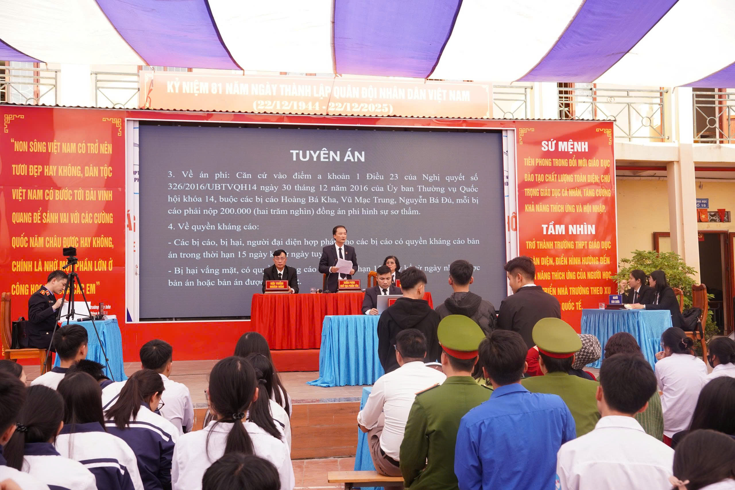 Phiên tòa giả định mang tính trực quan sinh động không chỉ giúp học sinh Trường THPT Nam Triệu nhận thức rõ những hành vi bị pháp luật nghiêm cấm mà còn phản ánh chân thực mức án nghiêm khắc được áp dụng. Qua đó, chương trình góp phần quan trọng trong việc giáo dục các em tự rèn luyện bản thân, nâng cao ý thức chấp hành pháp luật và xây dựng môi trường học đường an toàn, lành mạnh./.