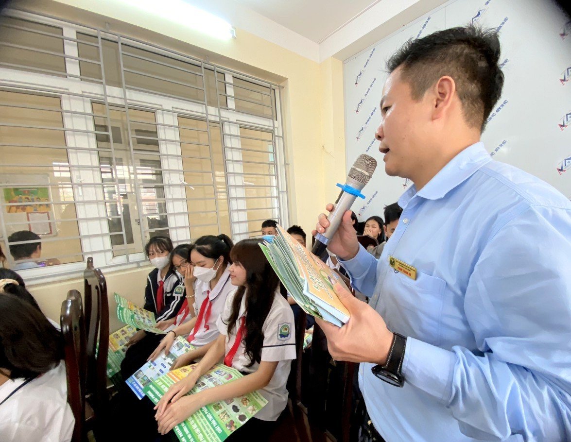 Nghe tuyên truyền hướng dẫn về phân loại rác thải sinh hoạt hàng ngày.