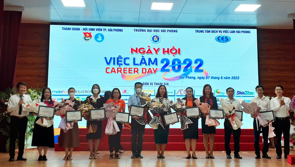 (Haiphong.gov.vn) - Sáng 7/6, Thành đoàn Hải Phòng - Hội Sinh viên thành phố phối hợp với Trường Đại học Hải Phòng và Trung tâm dịch vụ việc làm Hải Phòng tổ chức chương trình “Ngày hội việc làm năm 2022” với sự tham gia của 20 doanh nghiệp, tổ chức kinh tế - giáo dục - xã hội có quy mô trong và ngoài địa bàn thành phố.