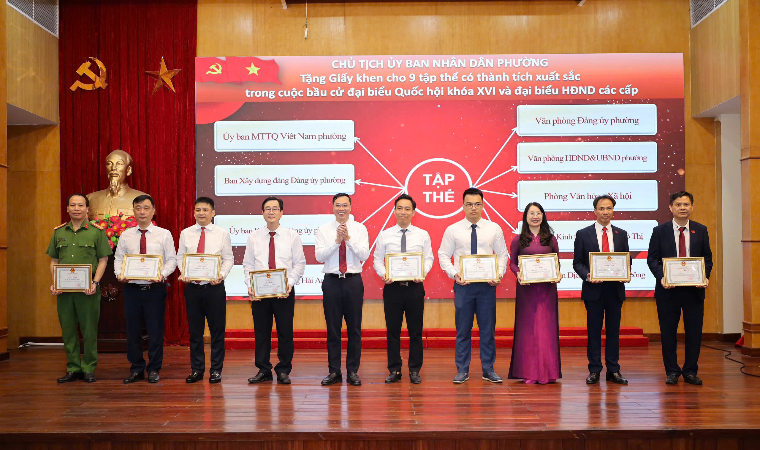 Nhân dịp này, Ban chỉ đạo của Đảng uỷ phường biểu dương thành tích của 25 tổ bầu cử, Chủ tịch UBND phường Hải An biểu dương, tặng Giấy khen cho 09 tập thể và 51 cá nhân có thành tích xuất sắc trong đợt thi đua cao điểm tổ chức thành công cuộc bầu cử đại biểu Quốc hội khóa XVI và đại biểu HĐND các cấp nhiệm kỳ 2026-2031 trên địa bàn phường Hải An./.