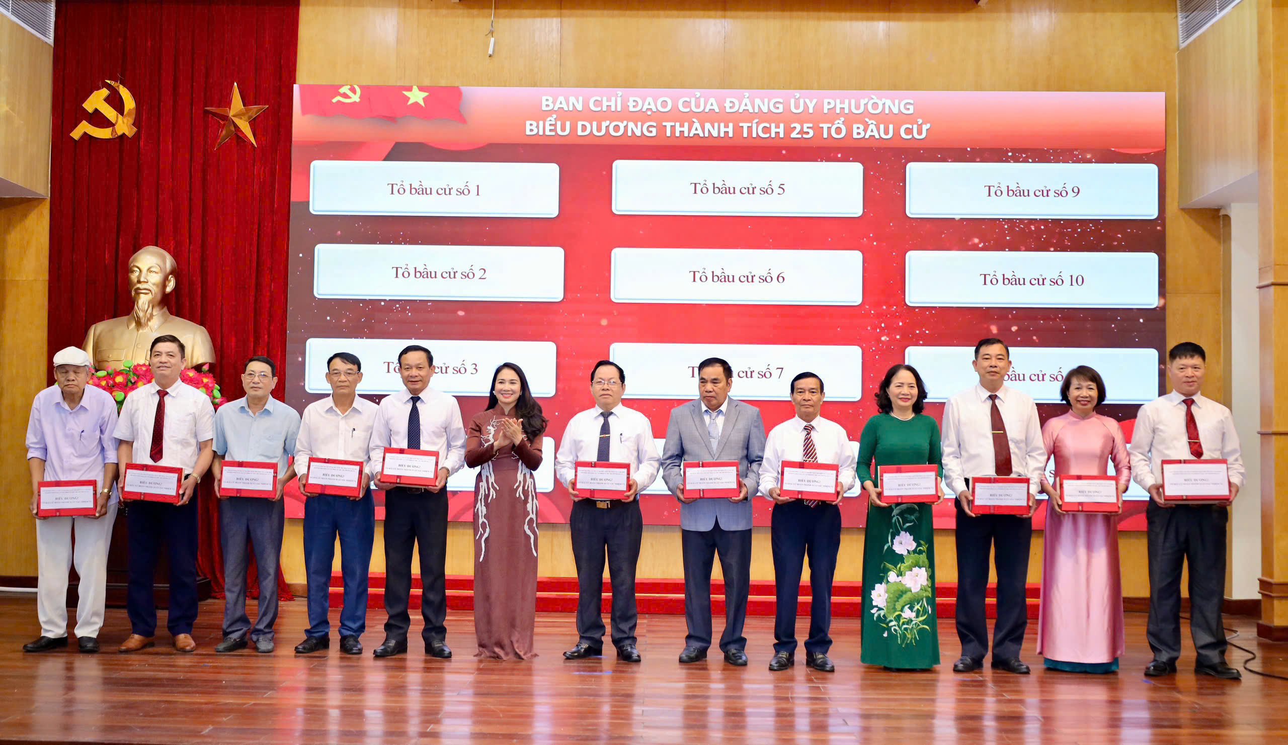 Các tập thể, cá nhân có thành tích xuất sắc trong đợt thi đua cao điểm tổ chức thành công cuộc bầu cử được khen thưởng.Ngày bầu cử 15/3/2026 tại 25/25 khu vực bỏ phiếu trên địa bàn phường được tổ chức trang trọng, diễn ra an toàn, dân chủ, đúng quy định pháp luật; không phát sinh đơn thư khiếu nại, tố cáo. Kết quả, toàn phường có 69.656/69.690 cử tri tham gia bỏ phiếu, đạt tỷ lệ 99,95%. Trong đó, khu vực bỏ phiếu số 25 đạt 100%; các khu vực còn lại đạt từ 99,93% đến 99,97%. Phường đã bầu đủ 27 đại biểu HĐND, bảo đảm chất lượng và cơ cấu theo quy định.