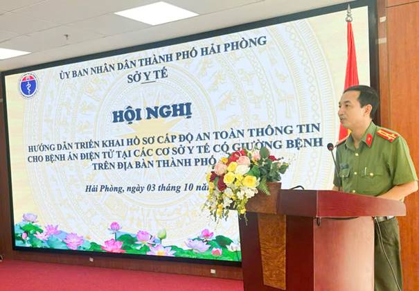 Thượng tá Trịnh Hồng Thái – Phó Trưởng phòng PA05 phát biểu tại Hội nghị.Ở góc độ an ninh, Thượng tá Trịnh Hồng Thái – Phó Trưởng phòng PA05, Công an TP Hải Phòng nhấn mạnh: “Dữ liệu y tế là dữ liệu đặc biệt nhạy cảm, luôn nằm trong tầm ngắm của tội phạm mạng. Mỗi cơ sở y tế phải nhận thức rõ trách nhiệm bảo vệ dữ liệu như bảo vệ chính uy tín và sinh mệnh số của mình.”