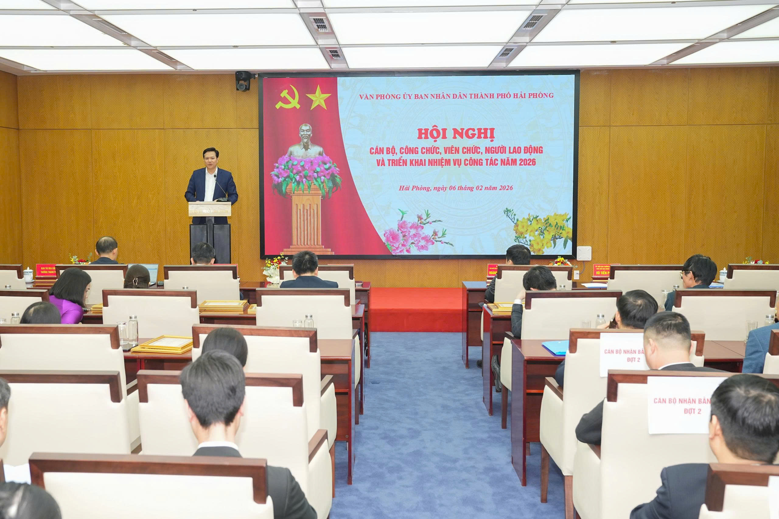 (Haiphong.gov.vn) - Chiều 6/2, Văn phòng UBND thành phố tổ chức Hội nghị cán bộ, công chức, viên chức, người lao động năm 2025; tổng kết công tác năm 2025 và triển khai nhiệm vụ công tác năm 2026. Dự Hội nghị có các đồng chí: Vũ Tiến Phụng, Ủy viên Ban Thường vụ Thành ủy, Phó Chủ tịch UBND thành phố; Hoàng Minh Cường, Phó Chủ tịch UBND thành phố.
