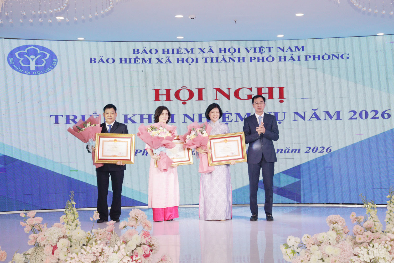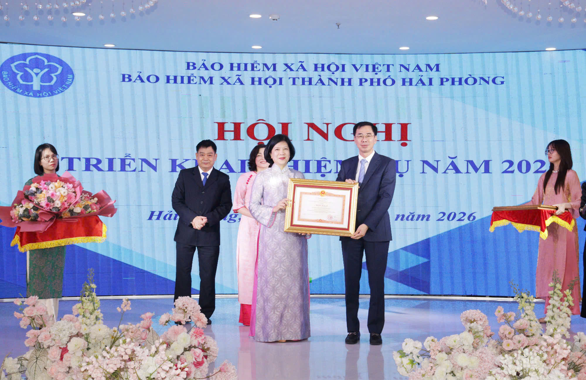 Đồng chí Đào Việt Ánh, Phó Giám đốc BHXH Việt Nam trao Bằng khen của Thủ tướng Chính phủ cho các cá nhân.Năm 2026, BHXH thành phố Hải Phòng xác định 11 nhóm nhiệm vụ trọng tâm thực hiện, trong đó tích cực, chủ động tham mưu với Thành ủy, HĐND, UBND thành phố; tăng cường phối hợp với các cấp, ngành, cơ quan, đơn vị, doanh nghiệp trong việc tổ chức thực hiện chính sách BHXH, BHYT, góp phần đảm bảo an sinh xã hội trên địa bàn thành phố. Triển khai đồng bộ các giải pháp nhằm phát triển người tham gia, giảm số tiền chậm đóng BHXH, BHTN, BHYT. Tăng cường, đổi mới các hoạt động truyền thông chính sách, hỗ trợ người tham gia BHXH, BHTN, BHYT. Tăng cường công tác kiểm tra, hậu kiểm việc chấp hành các quy định pháp luật về chính sách BHXH, BHYT tại các đơn vị sử dụng lao động. Tiếp tục rà soát, cải cách thủ tục hành chính; tăng cường chuyển đổi số, đẩy mạnh giao dịch điện tử, tương tác đa phương tiện với người dân và doanh nghiệp. Tiếp tục kiện toàn, tinh gọn bộ máy tổ chức, bảo đảm hoạt động thông suốt, hiệu quả…