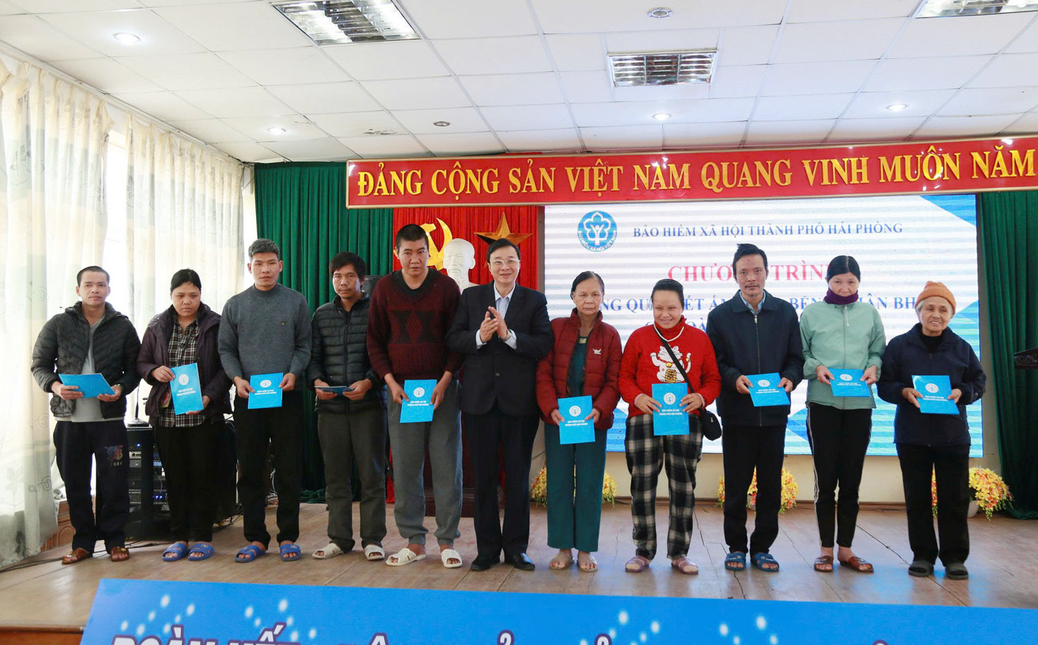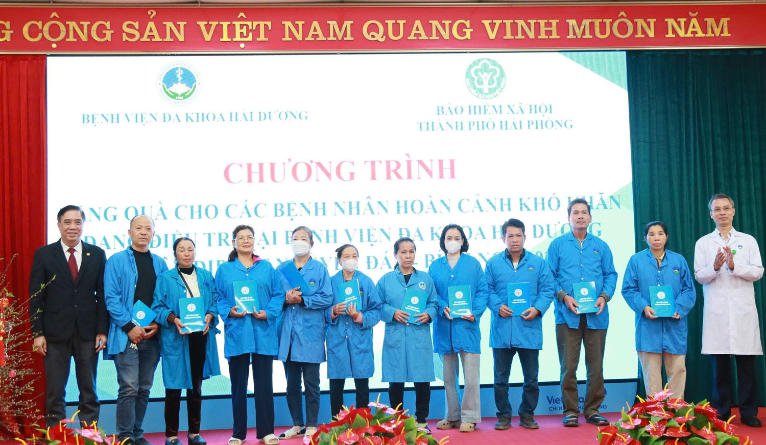 Lãnh đạo BHXH thành phố Hải Phòng trao quà cho các gia đình bệnh nhân.Các bệnh nhân bày tỏ xúc động trước sự quan tâm của BHXH thành phố Hải Phòng, những lời hỏi thăm, động viên kịp thời cùng món quà nghĩa tình chính là nguồn động lực tinh thần quý giá, đặc biệt là trong những ngày điều trị tại bệnh viện khi Tết nguyên đán đang cận kề.