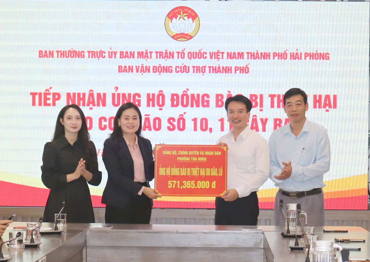 Đồng chí Nguyễn Đức Tuấn, Ủy viên Ban Thường vụ Thành ủy, Phó Chủ tịch Thường trực Ủy ban MTTQ Việt Nam thành phố Hải Phòng phát biểu tại buổi tiếp nhận ủng hộ.Tổng số tiền ủng hộ của 6 phường là 5.005.664.000 đồng. Trong đó, phường Hải Dương ủng hộ 686.276.000 đồng; phường Lê Thanh Nghị ủng hộ 2.108.945.000 đồng; phường Nam Đồng ủng hộ 279.881.000 đồng; phường Việt Hòa ủng hộ 309.197.000 đồng; phường Thành Đông ủng hộ 1.050.000.000 đồng và phường Tân Hưng ủng hộ 571,365.000 đồng. Đây là toàn bộ số tiền được quyên góp từ cán bộ, đảng viên, doanh nghiệp và nhân dân các phường, thể hiện truyền thống “lá lành đùm lá rách”, góp phần chia sẻ khó khăn, mất mát với đồng bào vùng bị ảnh hưởng bởi thiên tai.
