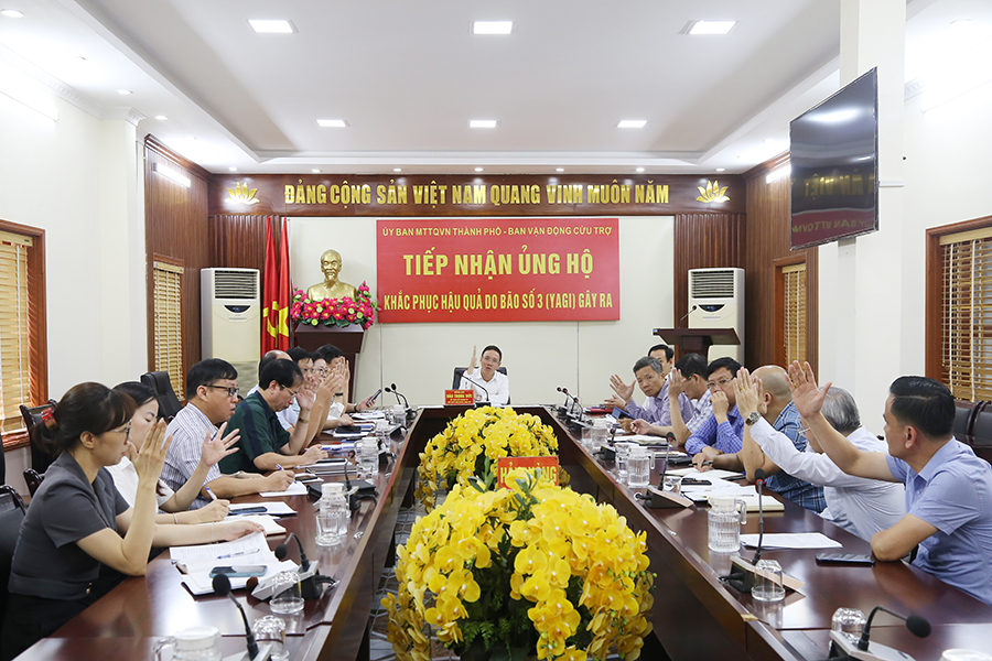 Đại biểu dự họp biểu quyết thông qua mức hộ trợ và đối tượng hỗ trợ.Tại cuộc họp, các thành viên Ban Vận động cứu trợ thành phố đã nhất trí mức hỗ trợ xây nhà mới là 100 triệu đổng; sửa nhà Đợt 1 chuyển sang xây mới hỗ trợ 80 triệu đồng. Phân bổ mức kinh phí Đợt 2 là 34.340.000.000 đồng từ nguồn vận động, tiếp nhận ủng hộ của Nhân dân khắc phục thiệt hại do cơn Bão số 3 về Ban Vận động cứu trợ quận, huyện để hỗ trợ xây mới cho 346 hộ nghèo; hộ cận nghèo; hộ gia đình có hoàn cảnh khó khăn mà không có khả năng khắc phục; trong đó: xây mới 333 căn, sửa nhà Đợt 1 chuyển sang xây mới 13 căn.