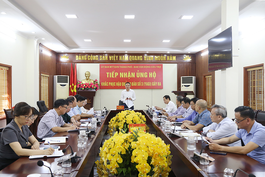 (Haiphong.gov.vn) – Sáng 14/10, Ban Vận động cứu trợ thành phố tổ chức cuộc họp xin ý kiến phân bổ, hỗ trợ Nhân dân khắc phục thiệt hại do Bão số 3. Đồng chí Đào Trọng Đức, Ủy viên Ban Thường vụ Thành ủy, Chủ tịch Ủy ban MTTQ Việt Nam thành phố - Trưởng Ban Vận động cứu trợ thành phố chủ trì cuộc họp. Tham dự có các thành viên Ban Vận động cứu trợ thành phố.