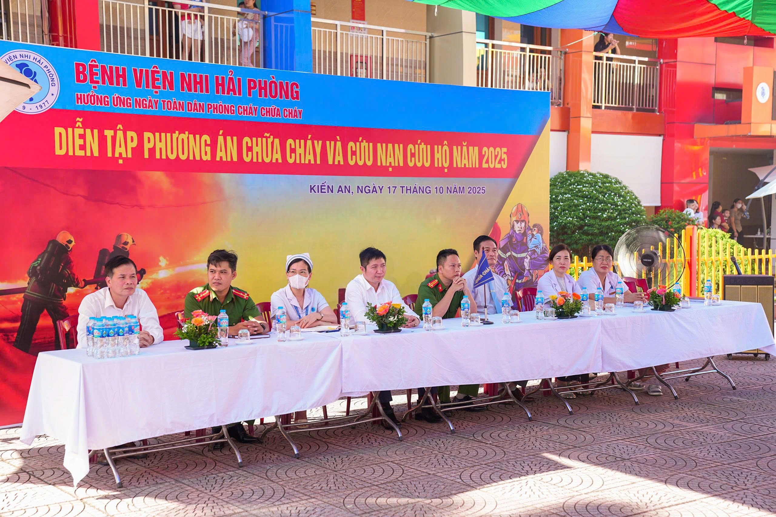 (Haiphong.gov.vn) – Chiều 17/10, Bệnh viện Nhi Hải Phòng phối hợp các lực lượng chức năng tổ chức diễn tập, thực tập phương án chữa cháy, cứu nạn, cứu hộ năm 2025. Dự chương trình có đại diện lãnh đạo Bệnh viện Nhi Hải Phòng, Phòng Cảnh sát PCCC và CNCH, Công an phường Kiến An và đông đảo cán bộ, y, bác sĩ bệnh viện. Đây là một trong nhiều hoạt động hưởng ứng "Ngày toàn dân phòng cháy và chữa cháy" 4/10 của Bệnh viện Nhi Hải Phòng.