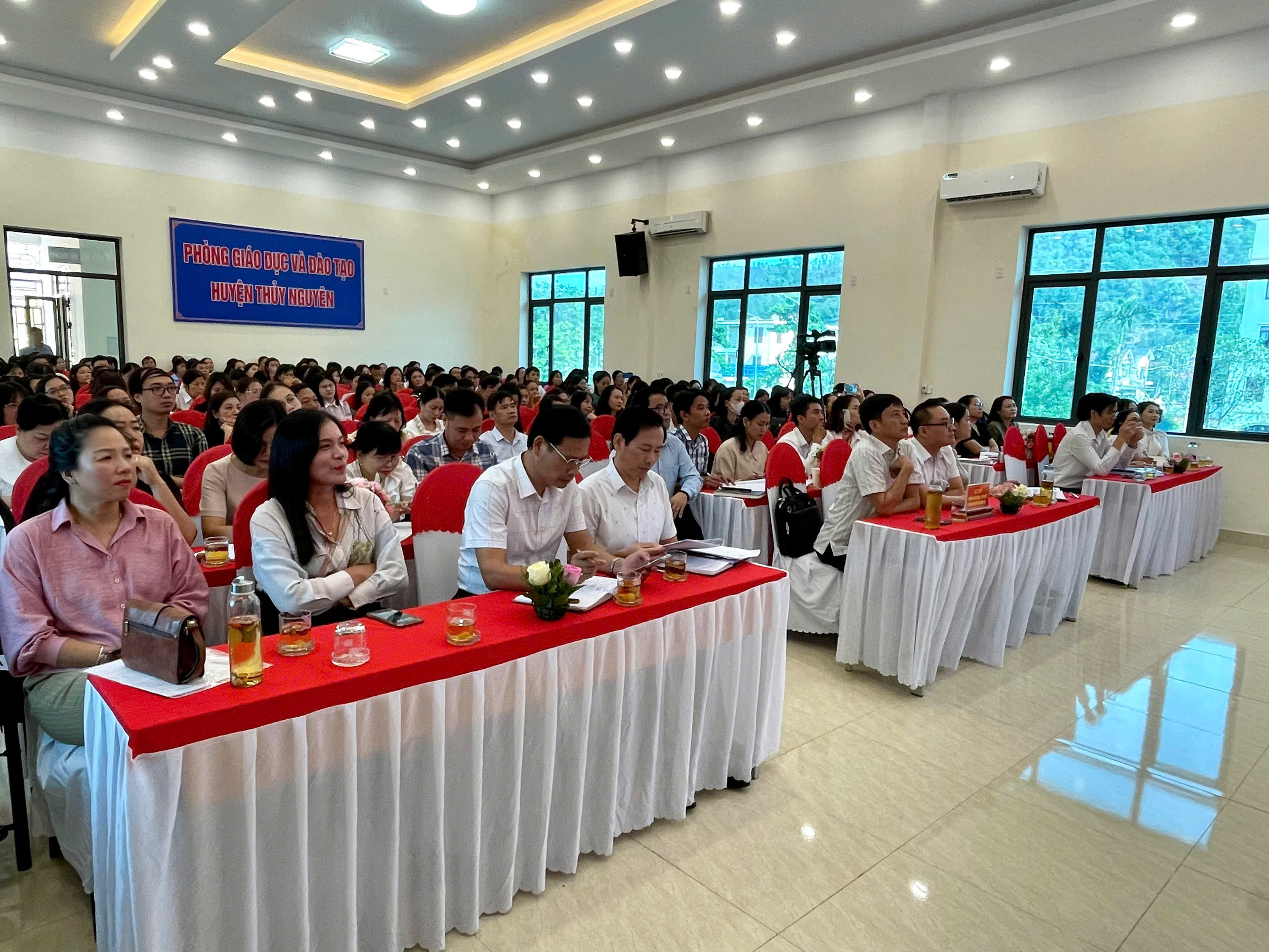 Các đại biểu tham dự Hội nghị.Thời gian qua, ngành Giáo dục thành phố tập trung đẩy mạnh chuyển đổi số, nhằm tăng cường công tác quản lý và nâng cao chất lượng dạy – học, đáp ứng yêu cầu của xã hội trong thời đại số. Việc ứng dụng công nghệ thông tin trong giảng dạy, đặc biệt là việc nâng cao chất lượng môn Tin học tại các trường Tiểu học, đóng vai trò thiết yếu. Thông qua môn Tin học, học sinh được rèn luyện khả năng tư duy logic, phân tích và sáng tạo trong việc giải quyết các vấn đề thực tế. Những kỹ năng này không chỉ giúp các em tự tin trước các thử thách trong học tập và đời sống, mà còn mở ra cơ hội tiếp xúc sớm với công cụ số, giúp học sinh hình thành thói quen tự học và tìm kiếm thông tin. Ngoài việc học thao tác cơ bản trên máy tính, học sinh còn được khuyến khích khai thác công nghệ trong các hoạt động như tìm hiểu bản đồ số, thực hiện tính toán trực tuyến và lập trình trò chơi đơn giản… Những kiến thức này trang bị cho học sinh nền tảng quan trọng để hòa nhập và thành công trong môi trường làm việc sau này.
