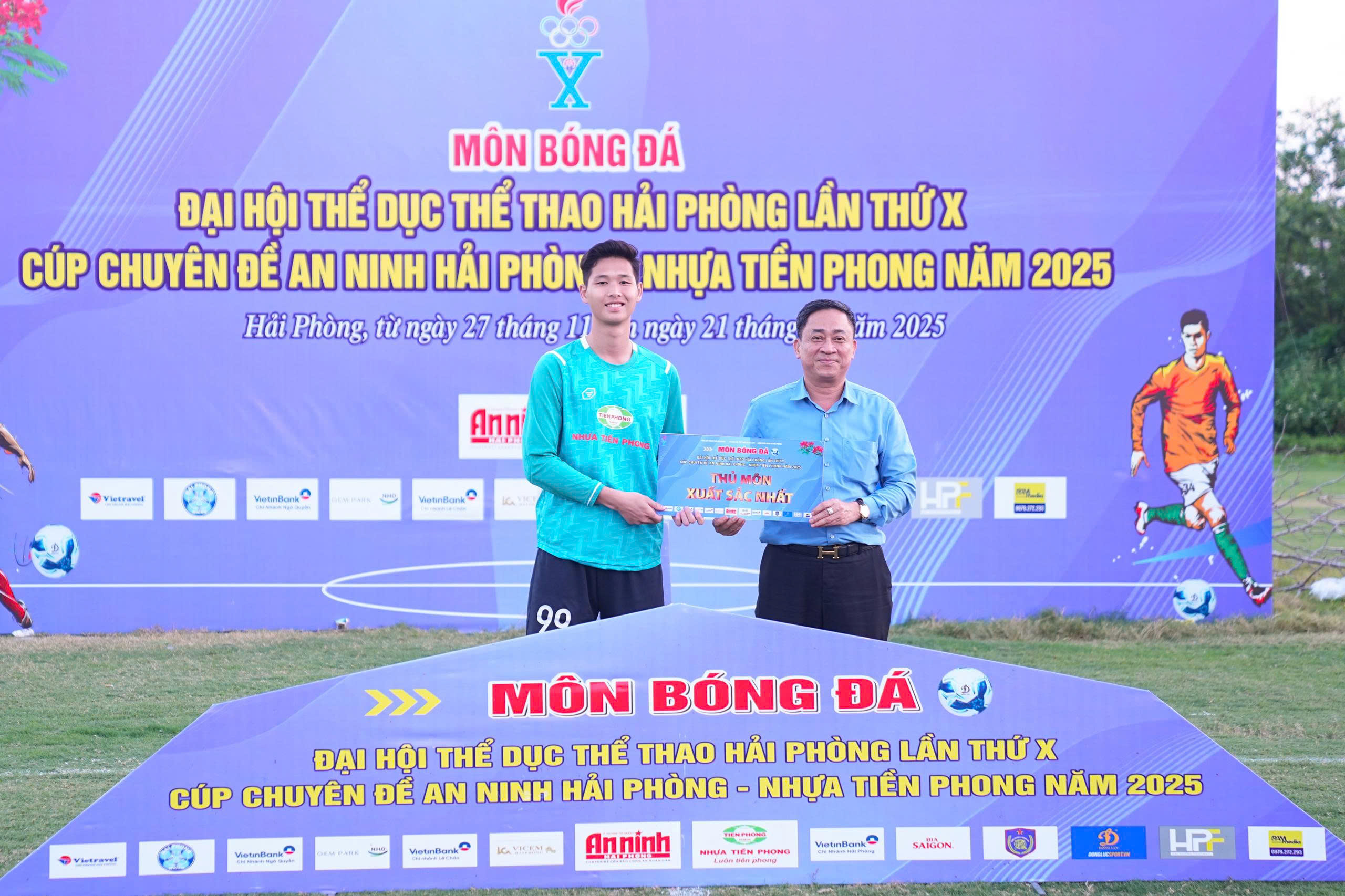 Ban tổ chức trao giải Thủ môn xuất sắc nhất cho thủ môn Lê Đăng Đạo, Đội tuyển phường Lê Chân.