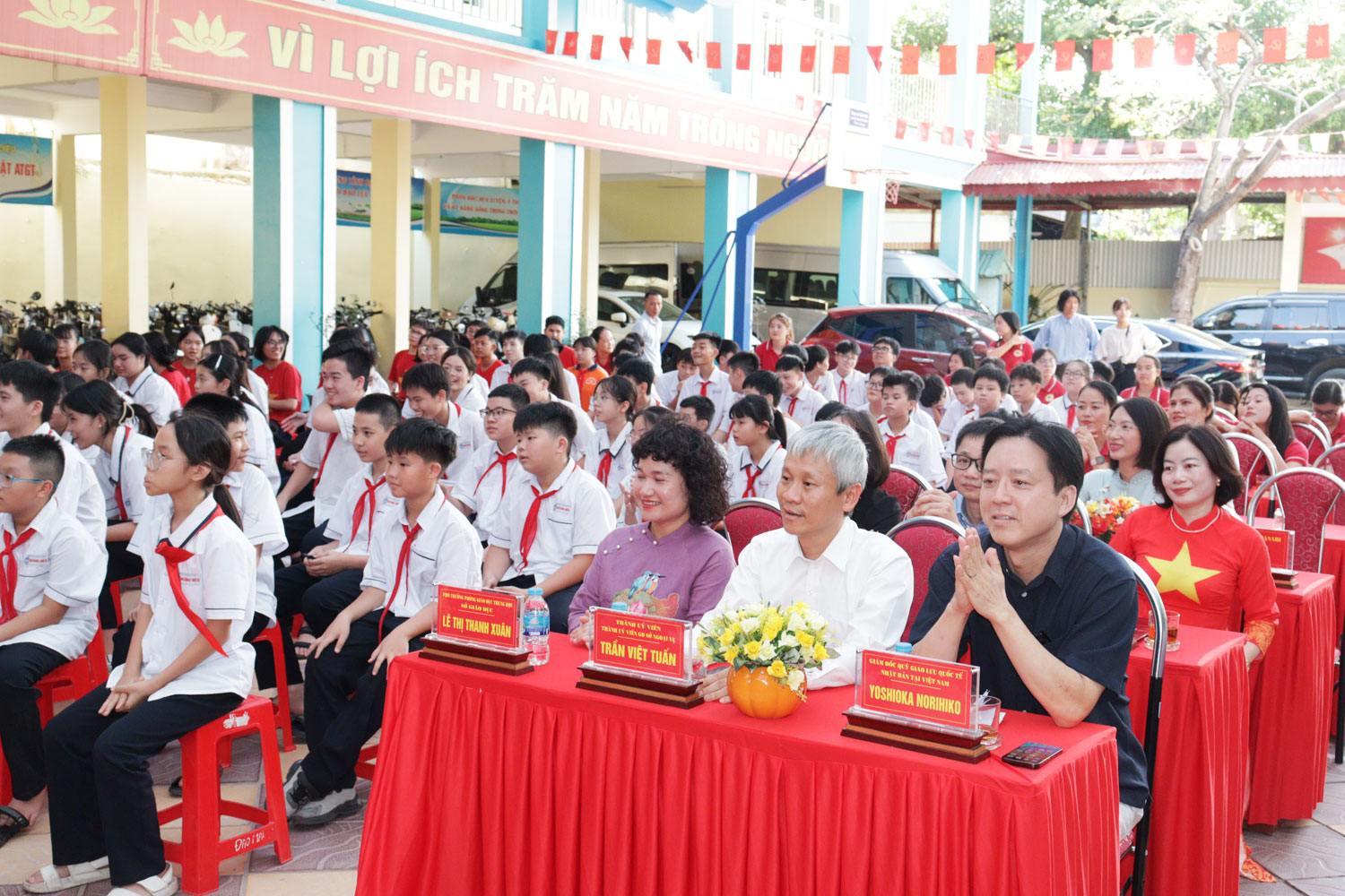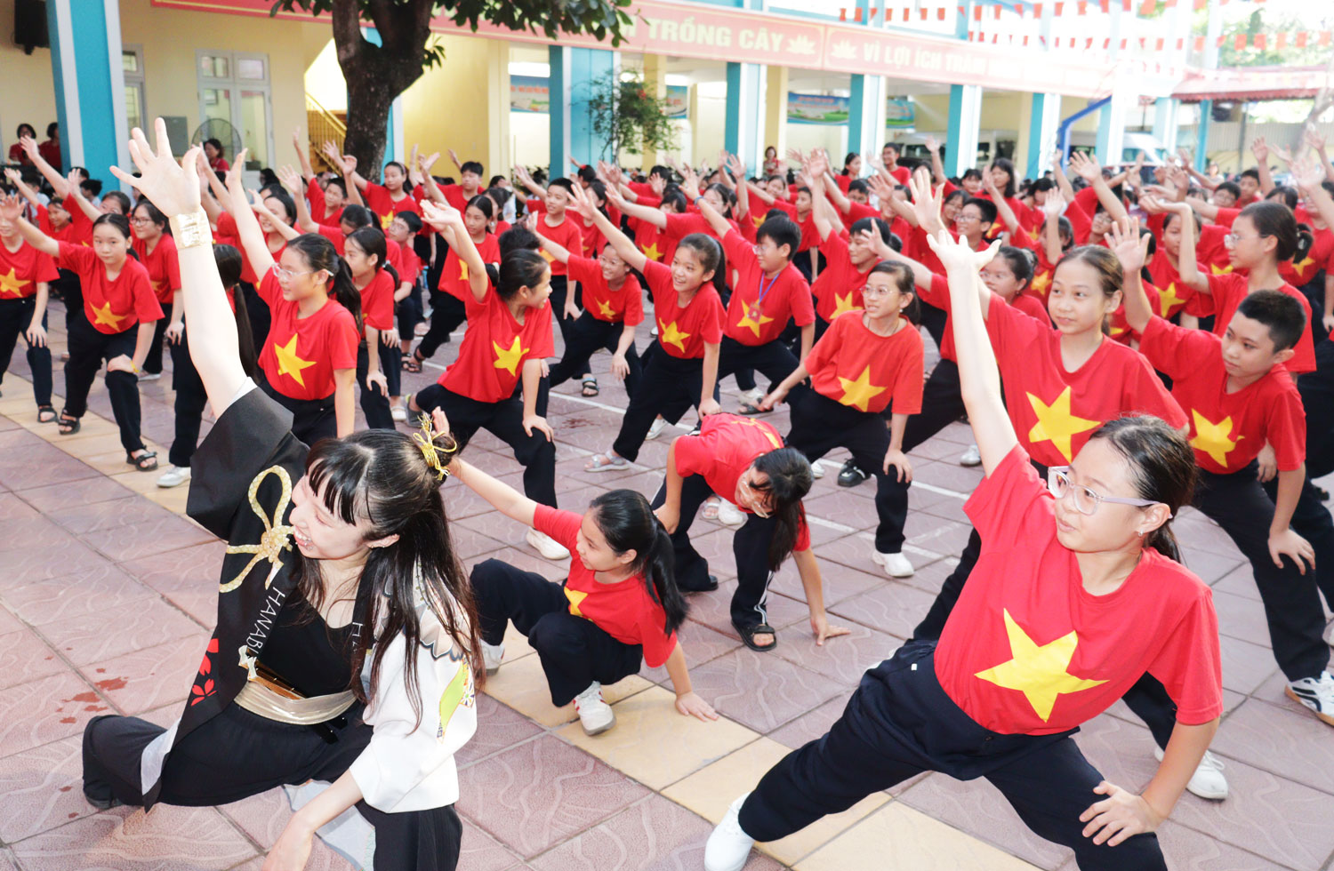 Các đại biểu và các em học sinh dự chương trình.Các nghệ sĩ đã mang đến những màn trình diễn vũ đạo truyền thống và hiện đại đầy cuốn hút, thể hiện được sự tinh tế, duyên dáng và cả tinh thần mạnh mẽ trong nghệ thuật múa Nhật Bản. Học sinh nhà trường cũng gửi tới đoàn nghệ sĩ những tiết mục văn nghệ đặc sắc, giới thiệu bản sắc văn hoá Việt Nam giàu truyền thống.