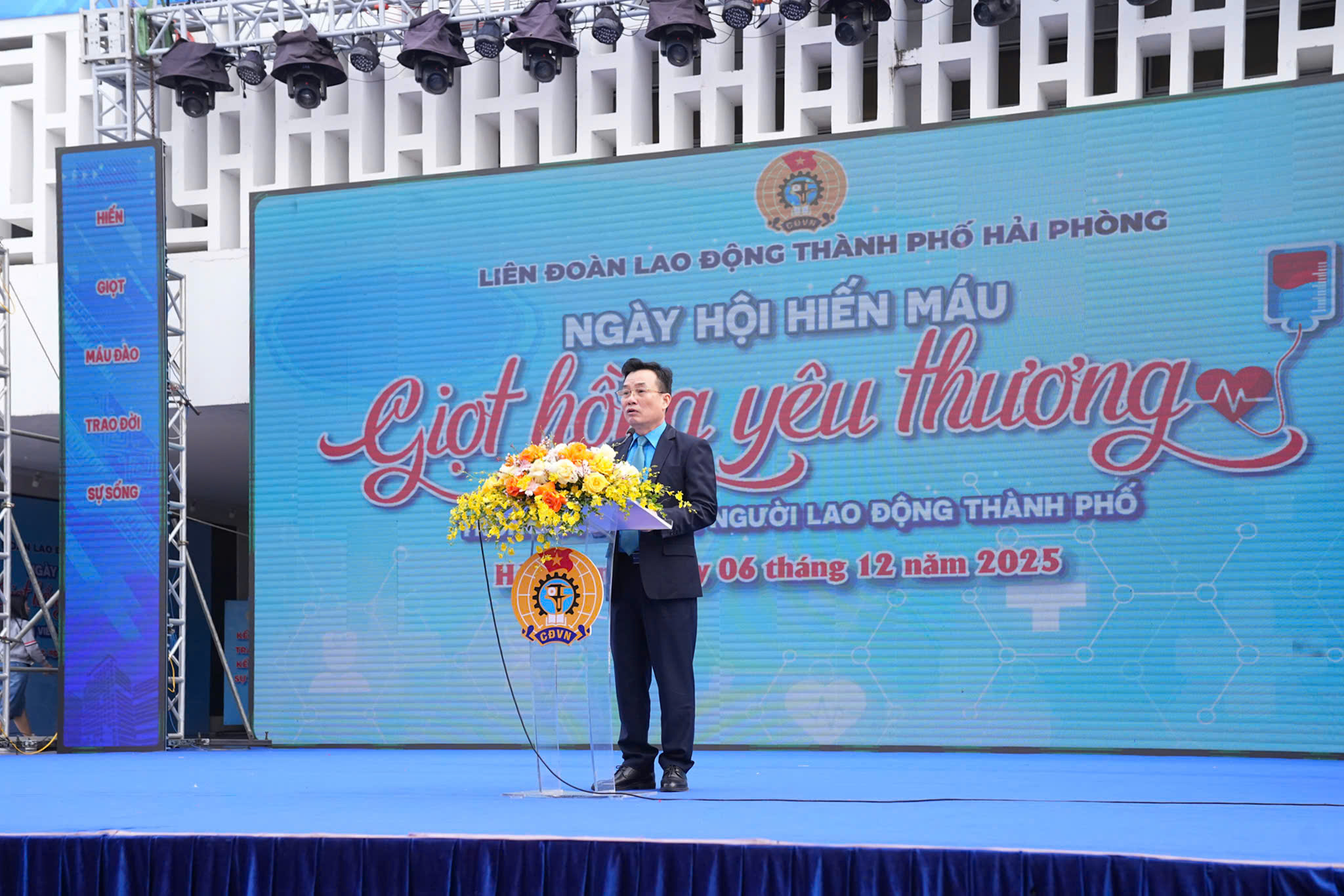 (Haiphong.gov.vn) - Sáng 6/12, Liên đoàn Lao động thành phố tổ chức Ngày hội hiến máu “Giọt hồng yêu thương” trong đoàn viên, người lao động thành phố. Chương trình nằm trong khuôn khổ Ngày hội Việc làm lần thứ I năm 2025.