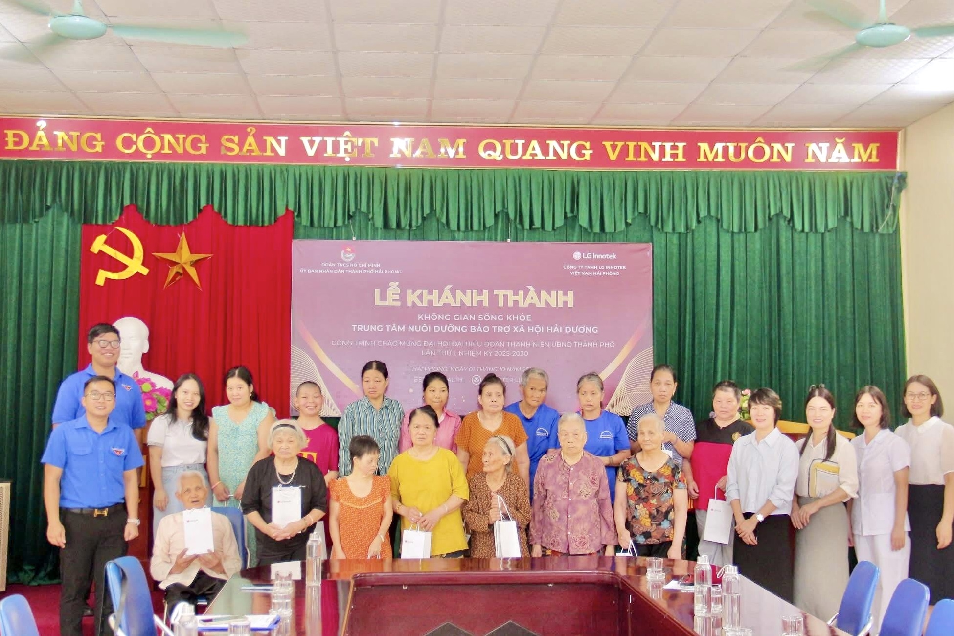 (Haiphong.gov.vn) - Kỷ niệm Ngày Quốc tế Người cao tuổi 01/10 và chào mừng Đại hội đại biểu Đoàn UBND thành phố lần thứ I, nhiệm kỳ 2025 – 2030. Ngày 01/10, Đoàn UBND thành phố Hải Phòng phối hợp với Công ty TNHH LG Innotek Việt Nam Hải Phòng tổ chức lễ khánh thành công trình thanh niên "Không gian sống khoẻ" tại Trung tâm Nuôi dưỡng bảo trợ xã hội Hải Dương.