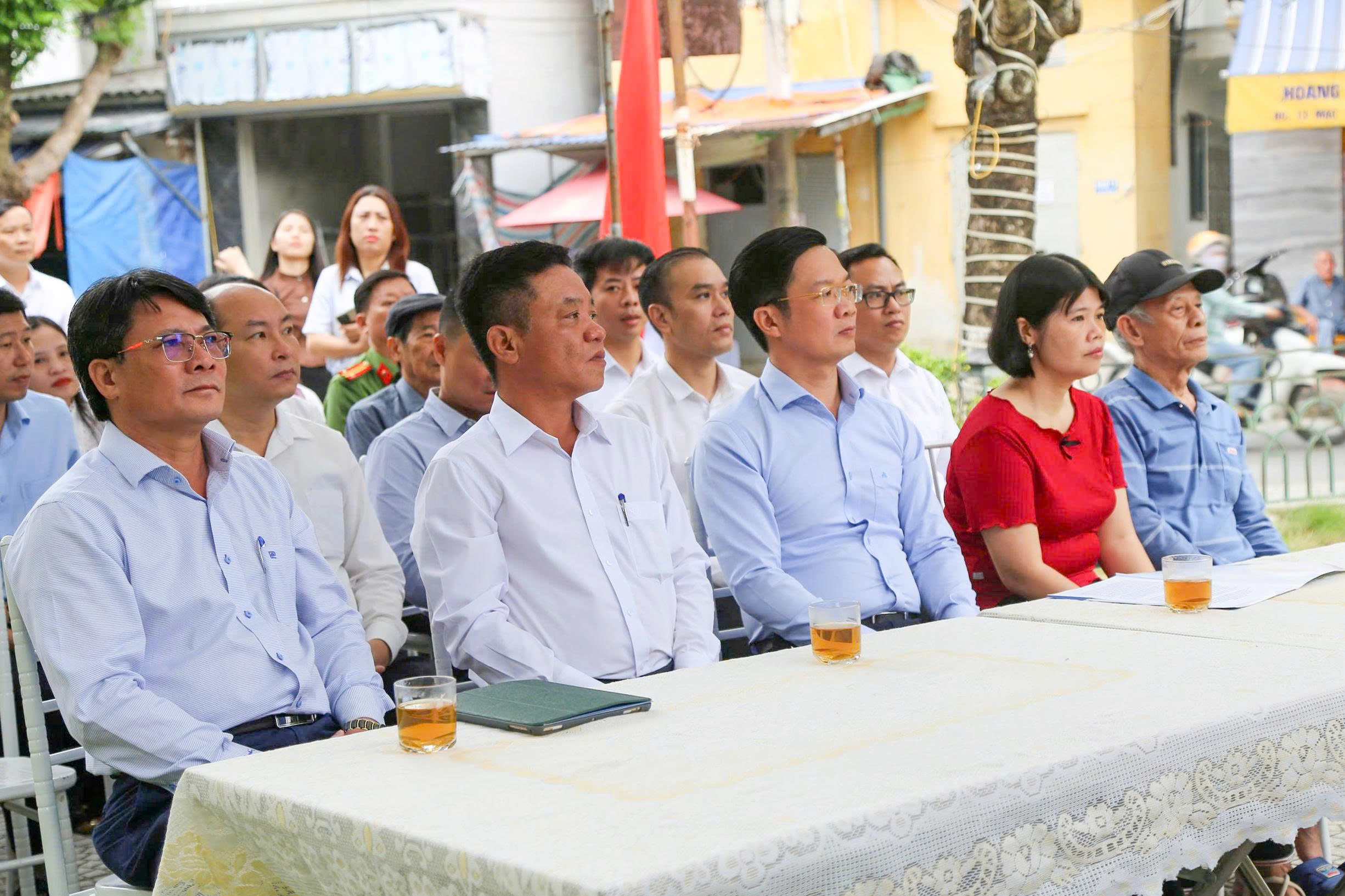 Đại biểu dự Lễ khởi công xây dựng nhà “Đại đoàn kết” cho hộ ông Nguyễn Hữu Liên (Tổ dân phố Hoàng Thiết Tâm).