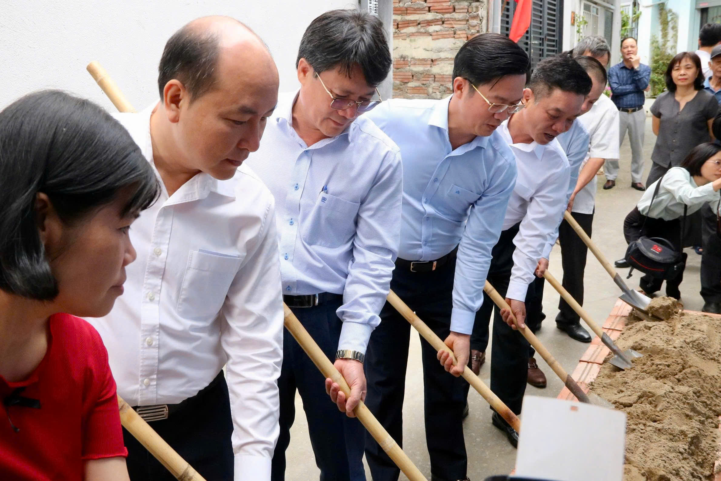 Lãnh đạo Ủy ban MTTQ Việt Nam thành phố và lãnh đạo phường Kiến An làm Lễ động thổ tại hộ gia đình ông Nguyễn Hữu Liên.