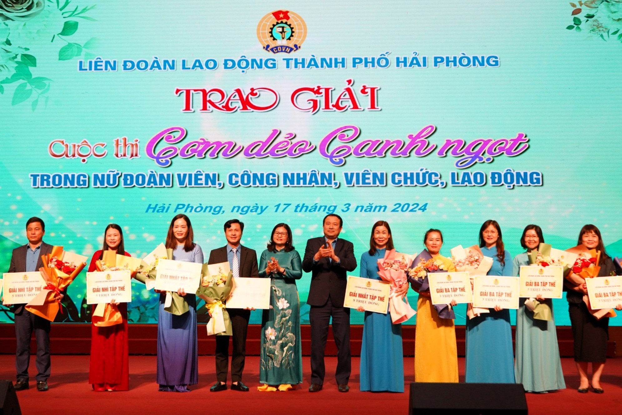 Đồng chí Nguyễn Anh Tuân, Chủ tịch Liên đoàn Lao động thành phố trao giải cho các tập thể tích cực tham gia Cuộc thi.Cuộc thi nấu ăn “Cơm dẻo, canh ngọt” nhằm thúc đẩy công tác chăm lo, nâng cao đời sống vật chất, tinh thần, sức khỏe cho nữ đoàn viên, công nhân viên chức lao động. Đồng thời, nâng cao kiến thức và kỹ năng nội trợ của nữ đoàn viên, công nhân viên chức lao động góp phần tiếp tục đẩy mạnh phong trào thi đua “Giỏi việc nước, đảm việc nhà” trong tình hình mới; khẳng định vai trò của nữ đoàn viên, công nhân viên chức lao động trong xây dựng gia đình “no ấm, tiến bộ, hạnh phúc, văn minh”. Bên cạnh đó, Cuộc thi góp phần tích cực vào việc hình thành và quảng bá hệ thống sản phẩm ẩm thực Hải Phòng, tăng cường thu hút khách du lịch, thúc đẩy phát triển kinh tế, xã hội thành phố.