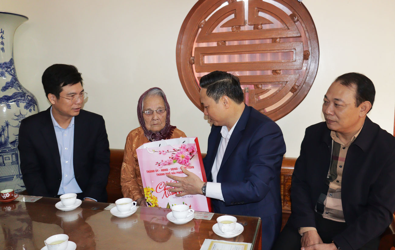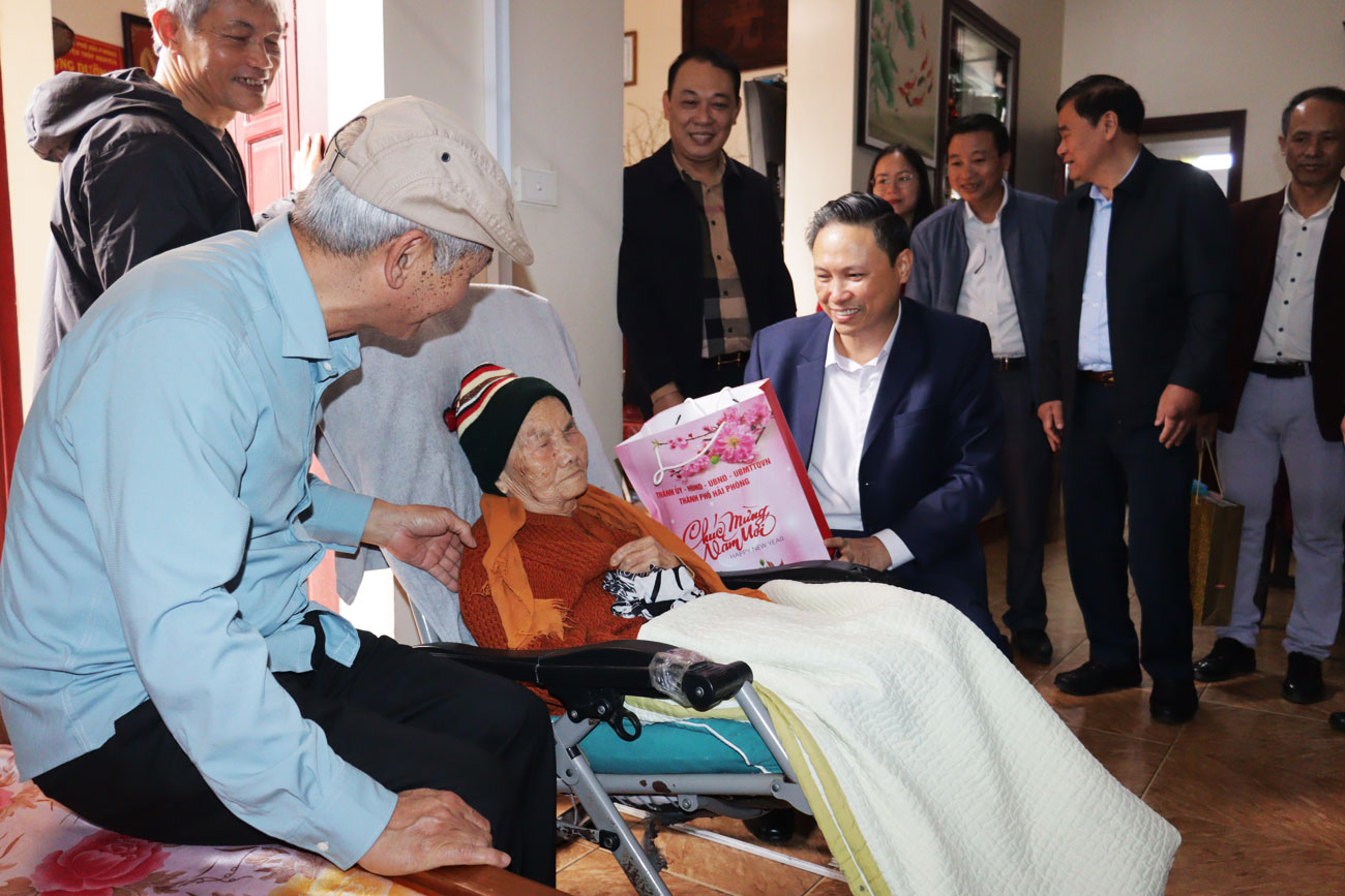 Trưởng Ban Nội chính Thành ủy thăm, tặng quà, chúc Tết Mẹ Việt Nam anh hùng Cao Thị Mó, tại Tổ dân phố Trung Quý, phường Bàng Lang, quận Đồ Sơn.