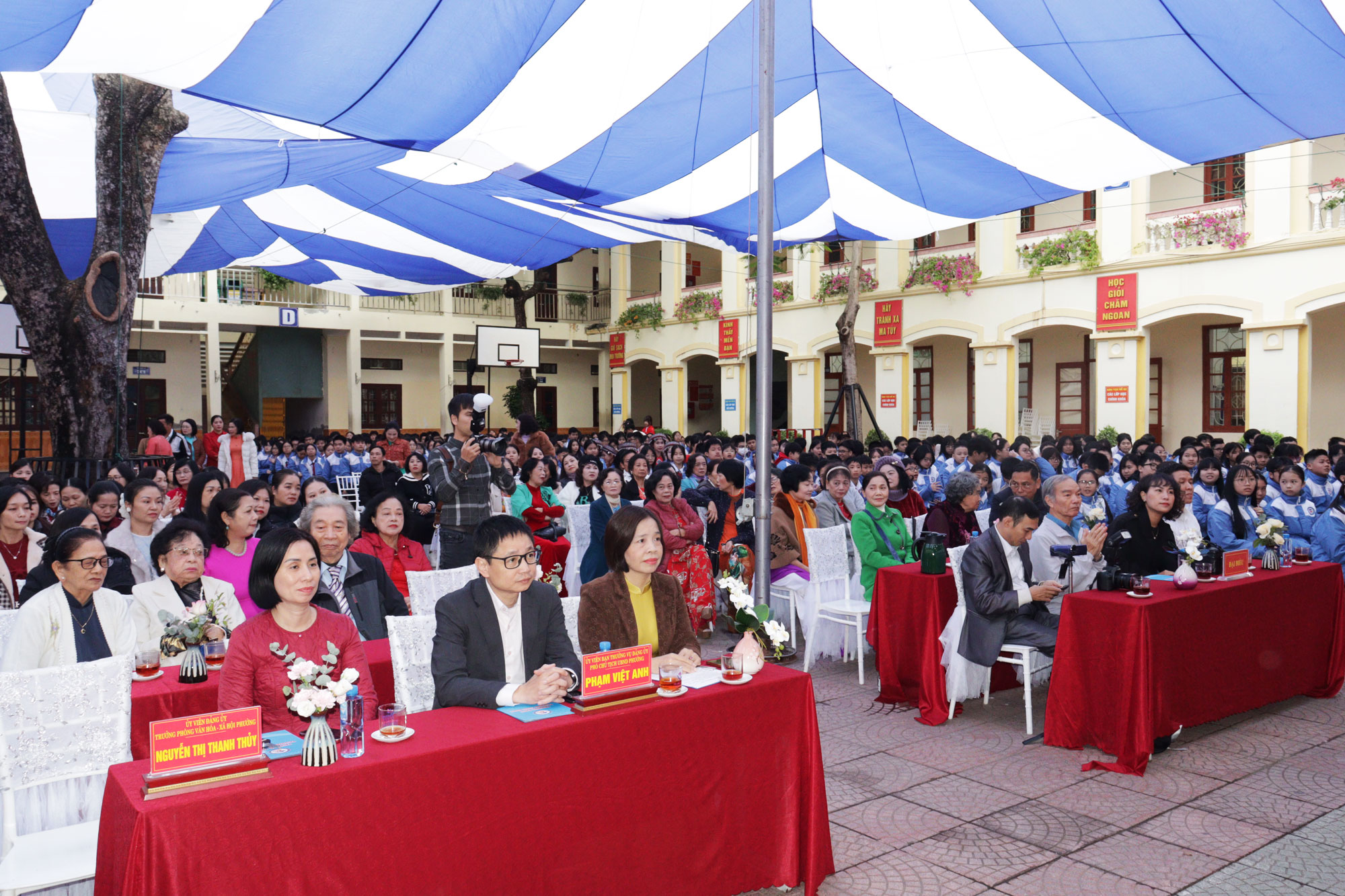 Các đại biểu dự chương trình.Tại chương trình, các đại biểu, giáo viên, học sinh nhà trường đã cùng nhau ôn lại kỷ niệm 43 năm Ngày Nhà giáo Việt Nam. Trong đó nhấn mạnh suốt chiều dài lịch sử, giáo dục - đào tạo đã góp phần quan trọng trong việc đào tạo nguồn nhân lực cho công cuộc xây dựng và bảo vệ Tổ quốc. Những thành tựu của giáo dục bắt nguồn từ truyền thống hiếu học của dân tộc; từ sự quan tâm, chăm lo của Đảng, Nhà nước, sự chung tay, đồng hành của mỗi gia đình, từ sự nỗ lực, cố gắng của đội ngũ nhà giáo và cán bộ quản lý giáo dục.