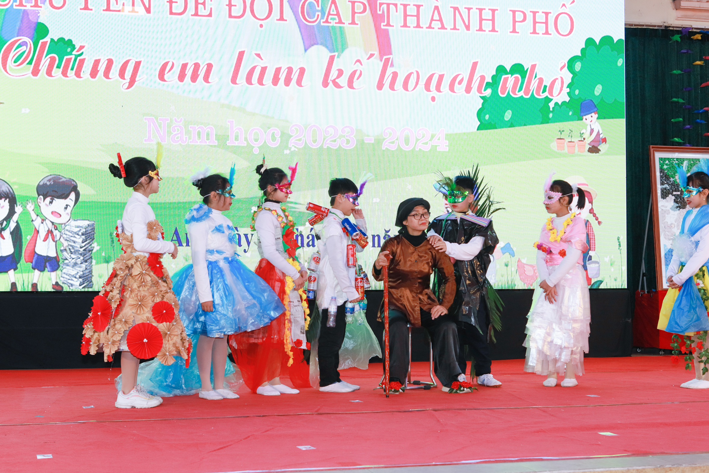 Tiểu phẩm do thầy trò nhà trường dàn dựng.Cũng tại chương trình đã diễn ra một hoạt động vô cùng độc đáo, ấn tượng đó là hoạt động “Đấu giá siêu phẩm”, với ý nghĩa “Chúng em làm kế hoạch nhỏ - ý nghĩa lớn” thầy trò Trường Tiểu học Cát Bi đã cùng chung tay thiết kế 02 tác phẩm vô cùng độc đáo, ấn tượng là bức tranh bản đồ Việt Nam được hình thành từ 864 chiếc nắp chai và bức tranh mang thông điệp bảo vệ môi trường “Tuổi nhỏ làm việc nhỏ tùy theo sức của mình”. Tổng giá trị đấu giá hai tác phẩm là 11 triệu 500 nghìn đồng. Số tiền thu được sau buổi đấu giá sẽ để giành tặng cho các bạn học sinh có hoàn cảnh khó khăn trong nhà trường.