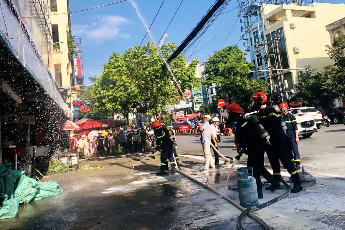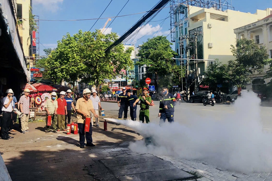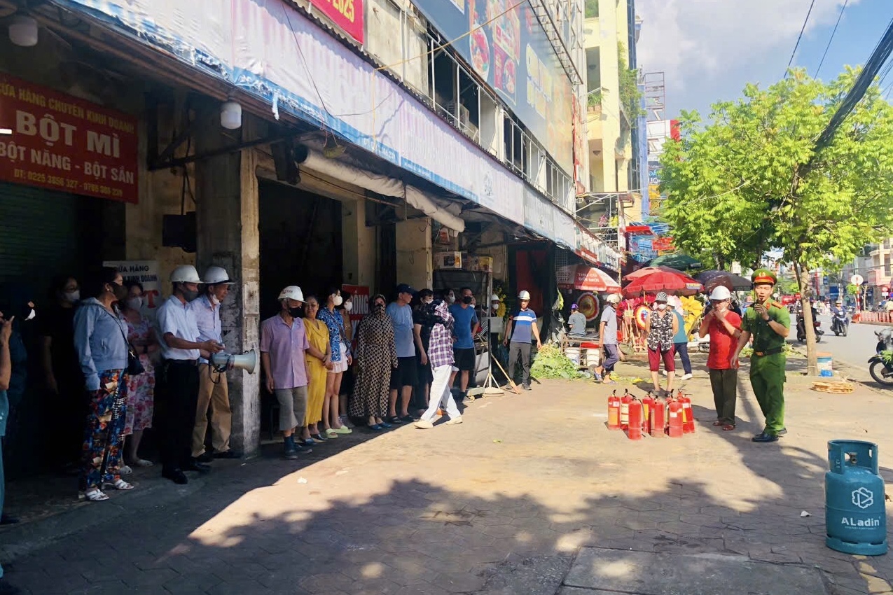 Tuyên truyền nâng cao kiến thức phòng cháy chữa cháy và diễn tập cứu nạn, cứu hộ cho người dân, tiểu thương tại chợ An Dương (phường An Biên)