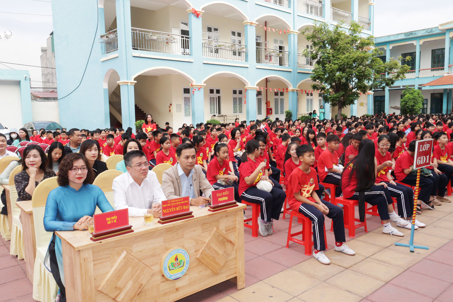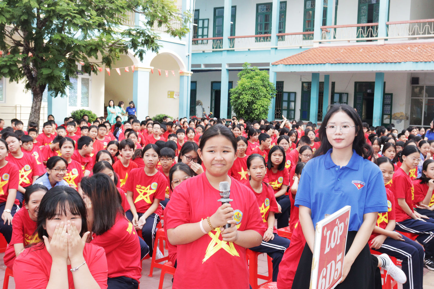 Các đại biểu và các em học sinh dự buổi tuyên truyền.Đồng thời tuyên truyền về phòng chống mua bán người, báo cáo viên đã cung cấp nhiều thông tin thiết thực, giúp giáo viên và học sinh nhận diện rõ hơn về tình hình, thủ đoạn của tội phạm mua bán người hiện nay; hướng dẫn các kỹ năng phòng ngừa, cách xử lý khi gặp tình huống nguy hiểm và các kênh liên hệ cần thiết để được hỗ trợ kịp thời.
