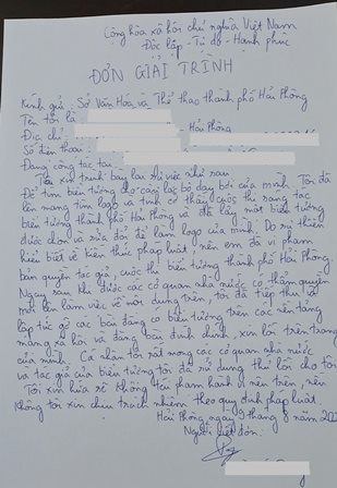 Đơn giải trình của đại diện đơn vị vi phạm.