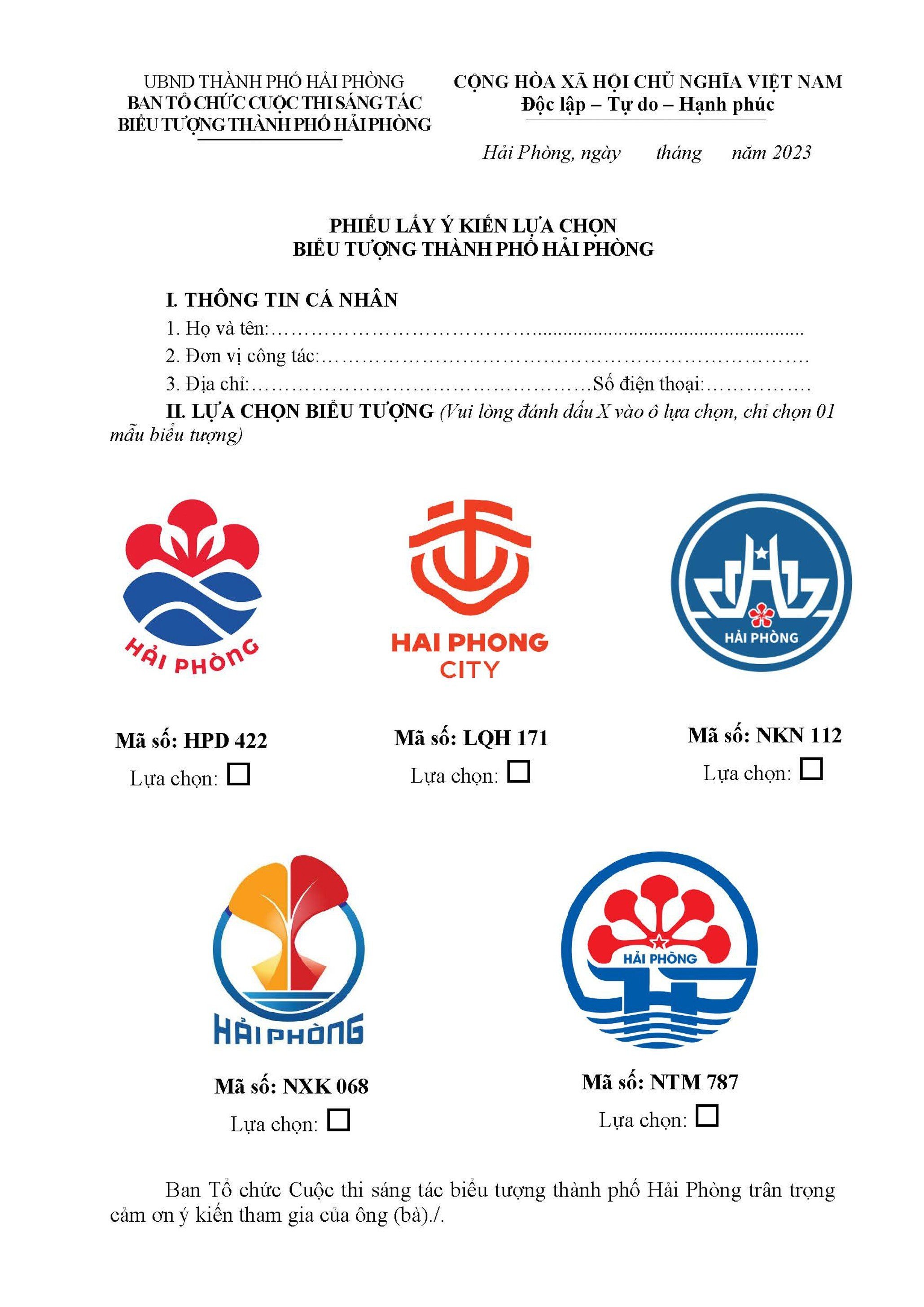 Phát biểu tại Hội nghị, Phó Chủ tịch UBND thành phố Lê Khắc Nam cho biết sau 7 tháng phát động, Cuộc thi Sáng tác biểu tượng thành phố Hải Phòng có 992 tác phẩm đến từ 850 tác giả trong và ngoài nước tham gia Cuộc thi. Hội đồng Nghệ thuật Cuộc thi gồm các chuyên gia uy tín trong nước tham gia lựa chọn ra 10 tác phẩm. Từ ngày 16/01/2023, Ban Tổ chức đã triển khai trưng bày xin ý kiến Nhân dân tại Nhà Triển lãm thành phố và một số địa phương. Sau khi tiếp nhận ý kiến Nhân dân, Ban Tổ chức đã tiếp thu đề nghị các tác giả hoàn thiện. Tiếp đó, Hội đồng Nghệ thuật đã chấm Vòng chung khảo Cuộc thi và chọn ra 5 tác phẩm xuất sắc nhất.