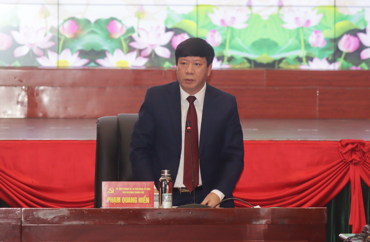 Đồng chí Phạm Quang Hiển, Bí thư Đảng ủy Khối các cơ quan thành phố phát biểu tại Hội nghị.Năm 2024, Đảng ủy Khối đã tập trung lãnh đạo, chỉ đạo các chi bộ, đảng bộ trực thuộc, đoàn thể, cán bộ, đảng viên, công chức, viên chức trong Khối chủ động, tích cực tham mưu đề xuất nhiều giải pháp với Thành ủy, HĐND, UBND thành phố lãnh đạo, chỉ đạo điều hành, thực hiện tốt các chỉ tiêu, nhiệm vụ phát triển kinh tế - xã hội năm 2024. Công tác xây dựng Đảng được triển khai đồng bộ, hiệu quả, duy trì nền nếp trên các mặt công tác. Đảng ủy Khối và các cấp ủy cơ sở trực thuộc tiếp tục chú trọng đổi mới phương thức lãnh đạo theo hướng đồng bộ, gắn kết chặt chẽ các mặt công tác tư tưởng với tổ chức, đạo đức cán bộ, kiểm tra, giám sát và thi hành kỷ luật đảng. Tình hình tư tưởng cán bộ đảng viên nhìn chung ổn định, luôn tin tưởng vào sự lãnh đạo của Đảng và điều hành của Nhà nước, các chủ trương, chính sách của thành phố. Các chỉ thị, nghị quyết của Đảng, Thành ủy, Đảng ủy Khối được quán triệt, triển khai nghiêm túc, đầy đủ, kịp thời.