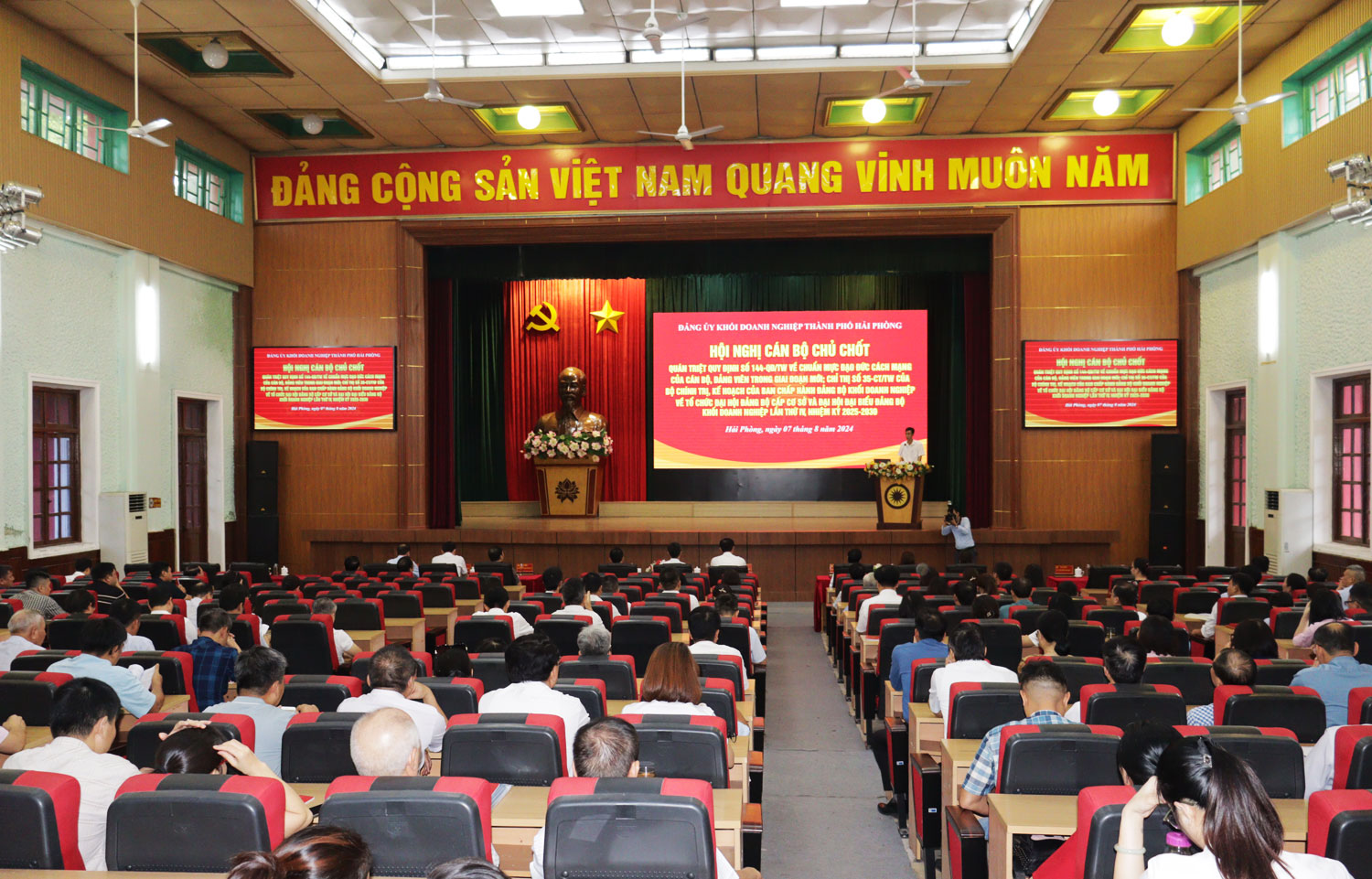 (Haiphong.gov.vn) - Sáng 07/8, Đảng ủy Khối Doanh nghiệp thành phố tổ chức Hội nghị cán bộ chủ chốt quán triệt Quy định số 144-QĐ/TW về thực hiện quy định chuẩn mực đạo đức cách mạng của cán bộ, đảng viên trong giai đoạn mới; Chỉ thị số 35-CT/TW của Bộ Chính trị và triển khai Kế hoạch của Ban Chấp hành Đảng bộ Khối về tổ chức Đại hội Đảng cấp cơ sở và Đại hội đại biểu Đảng bộ Khối Doanh nghiệp lần thứ IV, nhiệm kỳ 2025 - 2030. Đồng chí Đỗ Quang Khoa, Bí thư Đảng ủy Khối Doanh nghiệp thành phố chủ trì Hội nghị.
