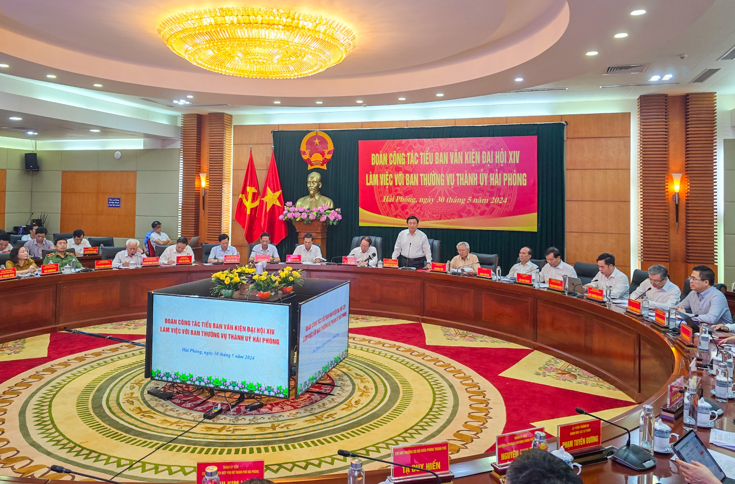 Đoàn Tiểu ban Văn kiện Đại hội XIV của Đảng làm việc với Thành ủy Hải Phòng
