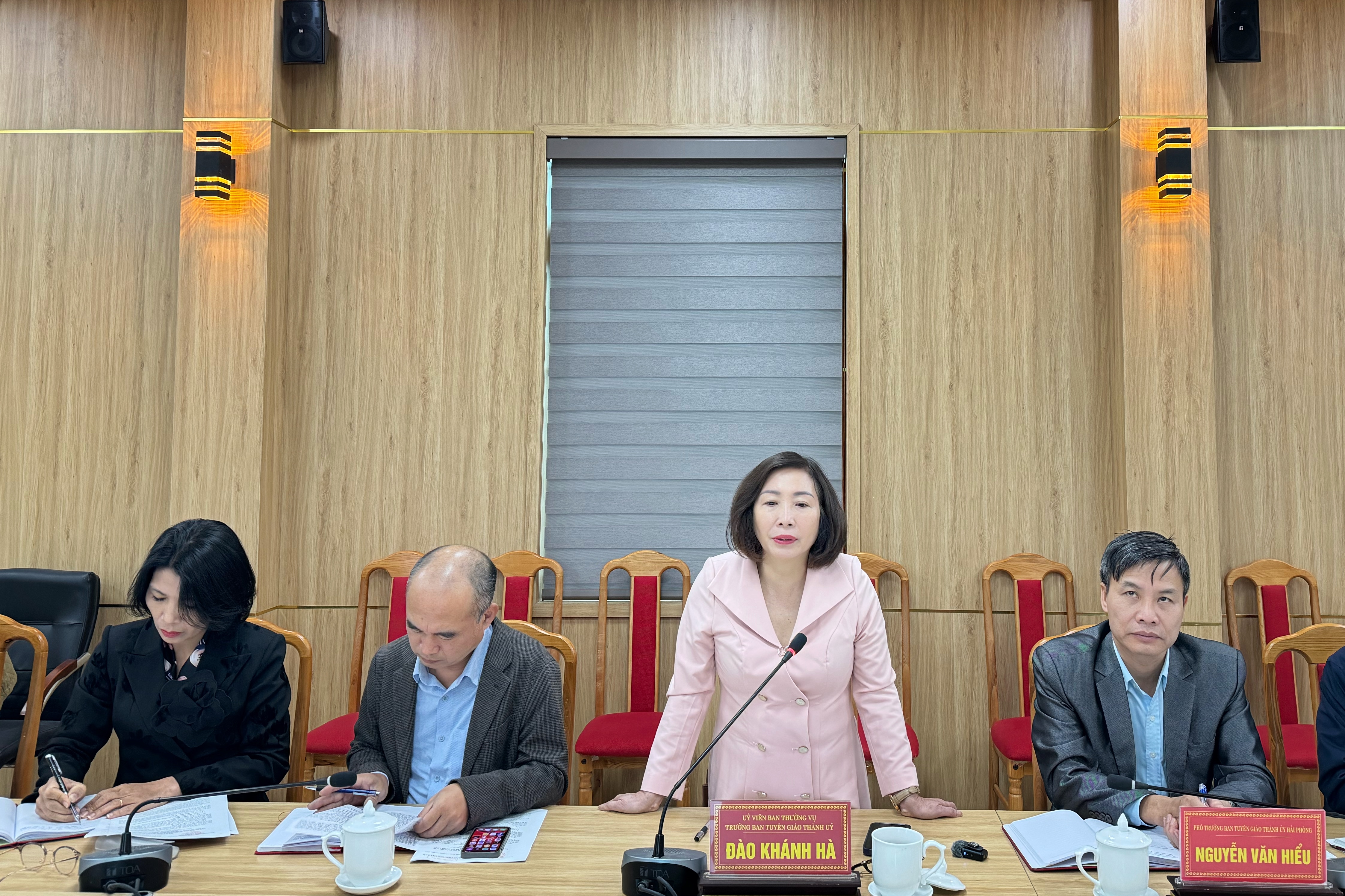 Đồng chí Đào Khánh Hà, Trưởng Ban Tuyên giáo Thành ủy phát biểu tại Hội nghị.Phát biểu tại Hội nghị, đồng chí Đào Khánh Hà, Trưởng Ban Tuyên giáo Thành ủy ghi nhận kết quả tích cực của Quận ủy Đồ Sơn trong công tác lãnh đạo, chỉ đạo chuẩn bị, tổ chức Đại hội nhiệm kỳ 2025 - 2030 bảo đảm tiến độ, yêu cầu, theo đúng quy định. Từ việc thực hiện sắp xếp và tinh gọn bộ máy hiện nay phát sinh một số vướng mắc không chỉ tại quận Đồ Sơn mà ở nhiều địa phương liên quan công tác nhân sự, chỉ đạo đại hội, thời điểm tổ chức đại hội…Các vấn đề này Tổ công tác tiếp thu và sẽ báo cáo Ban Thường vụ Thành ủy để sớm có hướng dẫn chung. Đồng chí đề nghị Quận ủy Đồ Sơn tiếp tục bám sát, chỉ đạo tốt công tác chuẩn bị, tổ chức Đại hội theo kế hoạch; đối với các vấn đề vướng mắc phát sinh trong quá trình thực hiện có thể linh hoạt xử lý trên cơ sở hướng dẫn chung từ Trung ương, Thành ủy./.