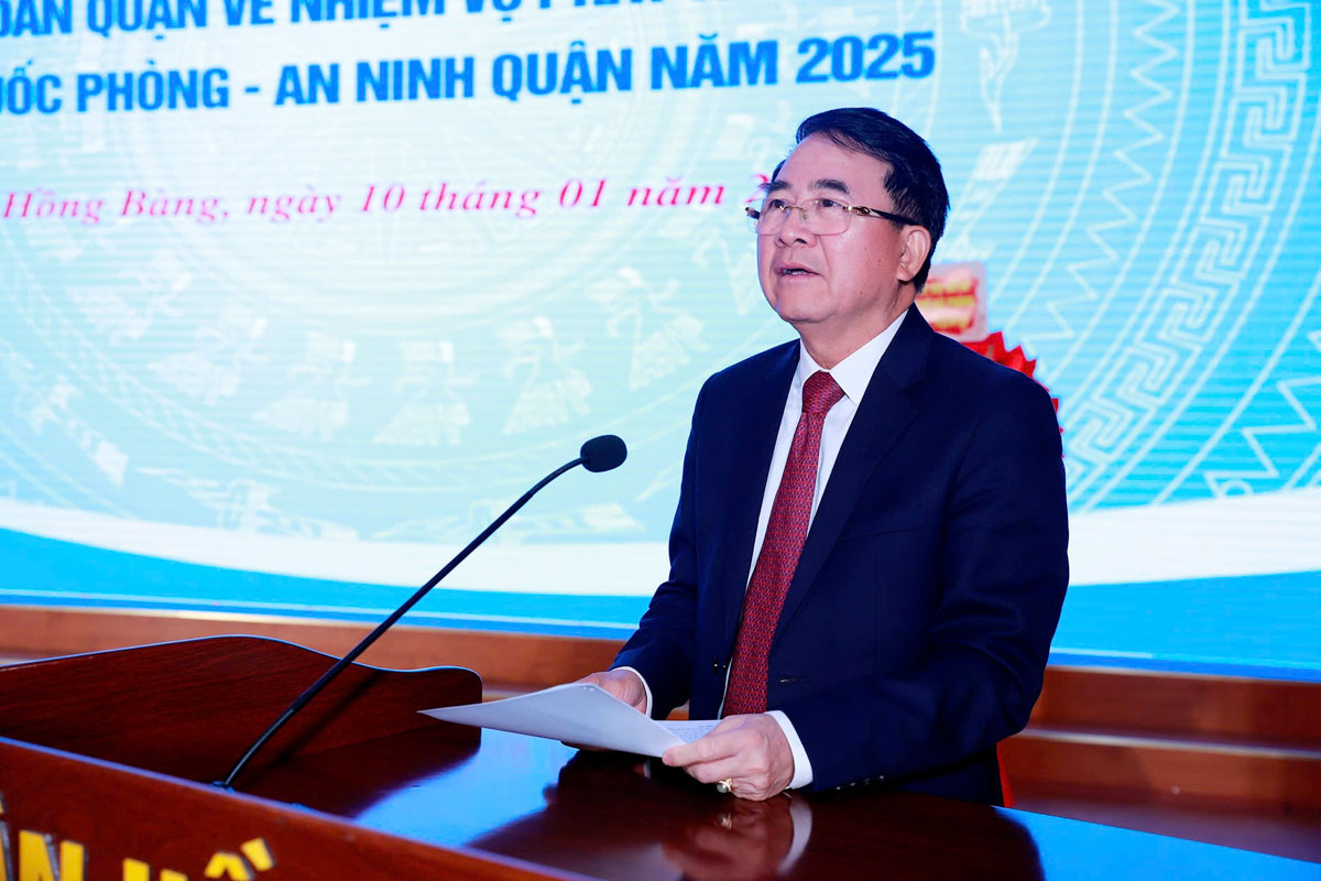 Phó Chủ tịch UBND thành phố Lê Khắc Nam phát biểu tại Hội nghị.Phát biểu tại Hội nghị, Phó Chủ tịch UBND thành phố ghi nhận và biểu dương tinh thần cố gắng, nỗ lực của tập thể lãnh đạo quận; các phòng, ban, ngành, đoàn thể và các tầng lớp Nhân dân trên địa bàn quận trong thời gian qua. Đồng thời nhấn mạnh, năm 2025, là năm có ý nghĩa đặc biệt quan trọng, năm diễn ra Đại hội Đảng các cấp, tiến tới Đại hội Đảng lần thứ XIV. Để thực hiện thắng lợi các chỉ tiêu, nhiệm vụ đặt ra; quận Hồng Bàng phải tiếp tục nỗ lực phấn đấu với quyết tâm chính trị cao nhất, năng động, đổi mới, sáng tạo trong triển khai các nhiệm vụ.