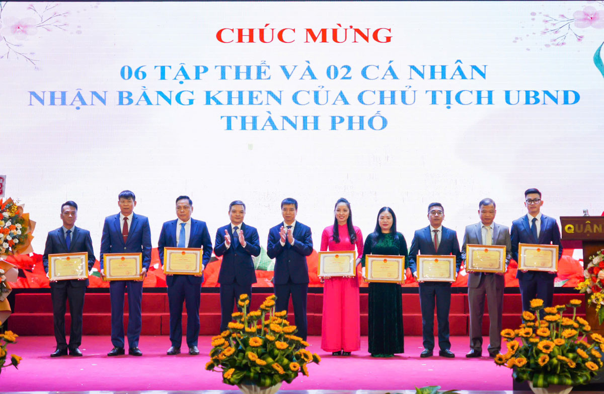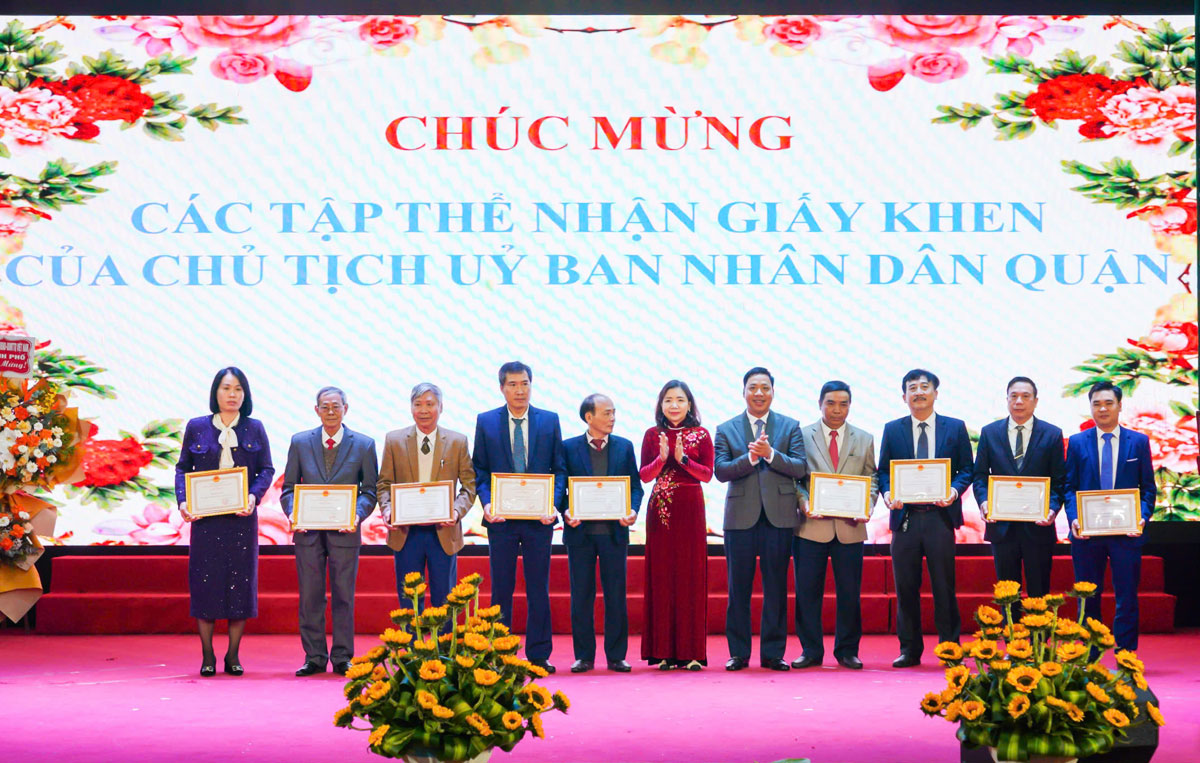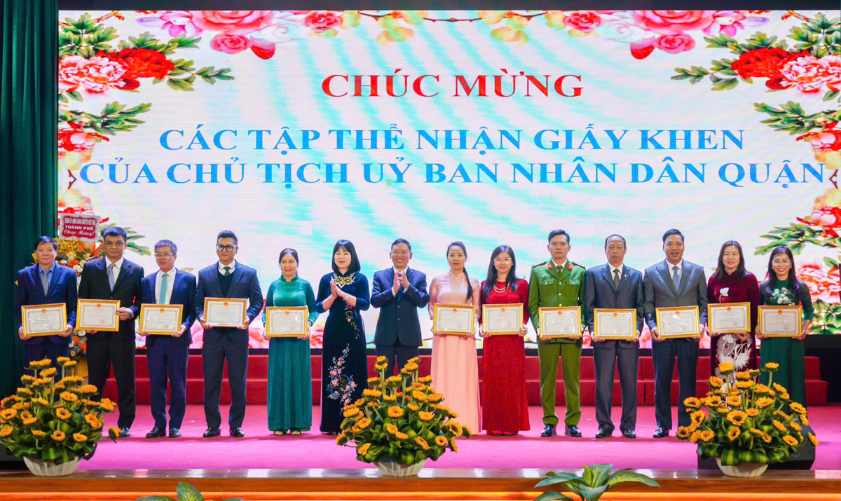 Các đơn vị ký kết giao ước thi đua năm 2025.Chủ tịch UBND quận công nhận 93 tập thể đạt danh hiệu tập thể lao động tiên tiến; 450 cá nhân được tặng danh hiệu chiến sĩ thi đua cấp cơ sở; tặng Giấy khen và thưởng cho 556 lượt tập thể và 701 lượt cá nhân có thành tích xuất sắc trong các phong trào thi đua và thành tích đột xuất trong thực hiện nhiệm vụ năm 2024.