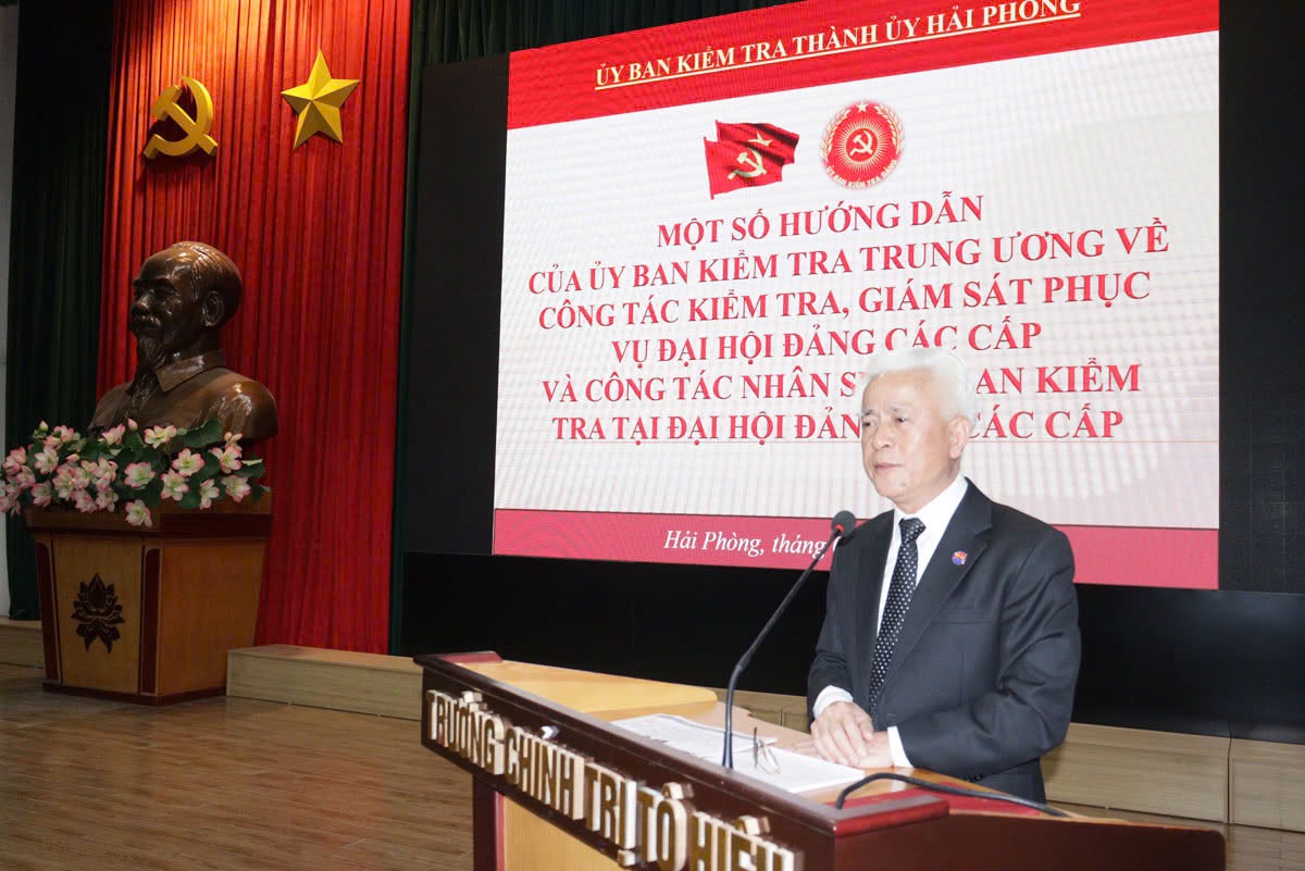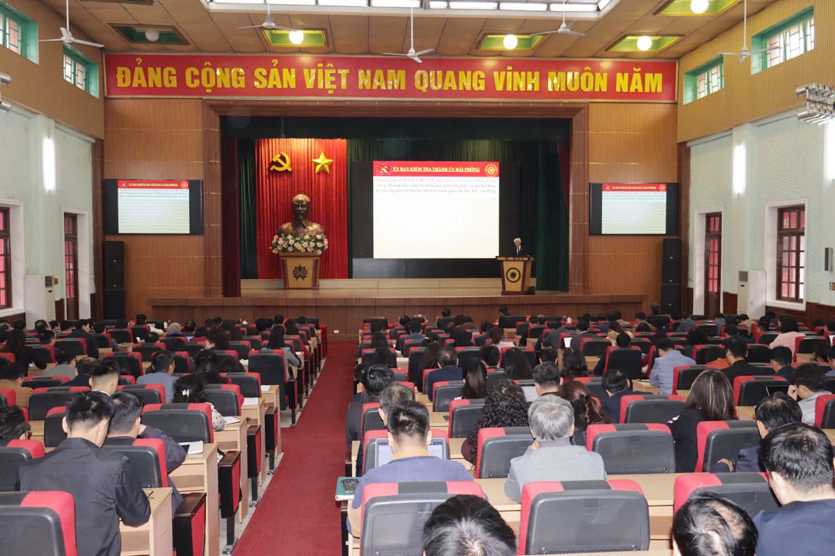 (Haiphong.gov.vn) - Sáng 10/1, tại Trường Chính trị Tô Hiệu, Ủy ban Kiểm tra Thành ủy tổ chức Hội nghị quán triệt, hướng dẫn công tác kê khai tài sản, thu nhập; triển khai các hướng dẫn của Ủy ban Kiểm tra Trung ương về công tác kiểm tra, giám sát phục vụ Đại hội, công tác nhân sự ủy ban kiểm tra tại Đại hội Đảng bộ các cấp tiến tới Đại hội đại biểu toàn quốc lần thứ XIV của Đảng. Đồng chí Nguyễn Đình Chuyến, Ủy viên Ban Thường vụ Thành ủy, Chủ nhiệm Ủy ban Kiểm tra Thành ủy chủ trì Hội nghị.