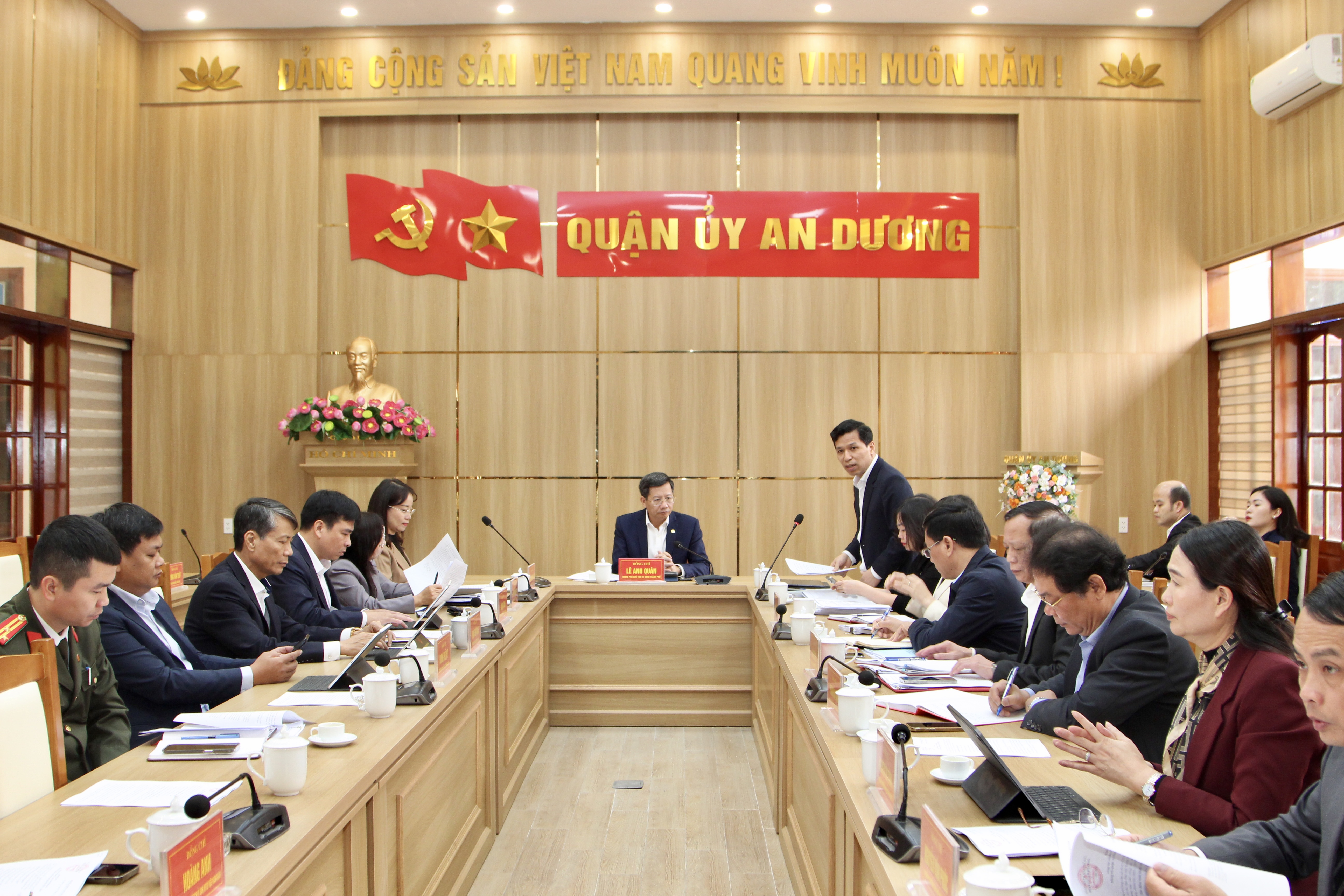 Quang cảnh Hội nghị.Theo báo cáo của Quận ủy An Dương, Đảng bộ quận An Dương có 39 Chi bộ, Đảng bộ cơ sở trực thuộc Quận ủy; 268 chi bộ trực thuộc Đảng bộ cơ sở. Bám sát chỉ đạo, hướng dẫn của Trung ương, Thành ủy,công tác lãnh đạo, chỉ đạo tổ chức đại hội Đảng các cấp nhiệm kỳ 2025-2030 được tập trung cao. Đến ngày 31/12/2024, có 114/268 Chi bộ trực thuộc Đảng bộ cơ sở hoàn thành tổ chức Đại hội nhiệm kỳ, các Đảng bộ còn có các Chi bộ trực thuộc chưa tổ chức Đại hội đăng ký hoàn thành xong trong tháng 1 và tháng 2/2025. Đối với công tác chuẩn bị Đại hội chi, đảng bộ cơ sở, 03 Đảng bộ, Chi bộ đăng ký Đại hội điểm gồm: Đảng bộ phường Hồng Thái, Đảng bộ Trung tâm Y tế quận, Chi bộ Trường THPT An Dương phấn đấu hoàn thành Đại hội trong tháng 2/2025; 36 đảng bộ, chi bộ còn lại phấn đấu hoàn thành đại hội trước tháng 6/2025. Đối với tổ chức Đại hội ở những tổ chức đảng mới thành lập (Đảng bộ Khối Đảng, đoàn thể và Đảng bộ Khối Chính quyền) dự kiến tổ chức Đại hội trong tháng 4/2025. Công tác chuẩn bị tổ chức Đại hội Đảng bộ quận cũng được tập trung lãnh đạo, chỉ đạo, cơ bản bảo đảm tiến độ theo kế hoạch và yêu cầu về các công tác: chuẩn bị các văn kiện, nhân sự, tuyên truyền, bảo đảm cơ sở vật chất.