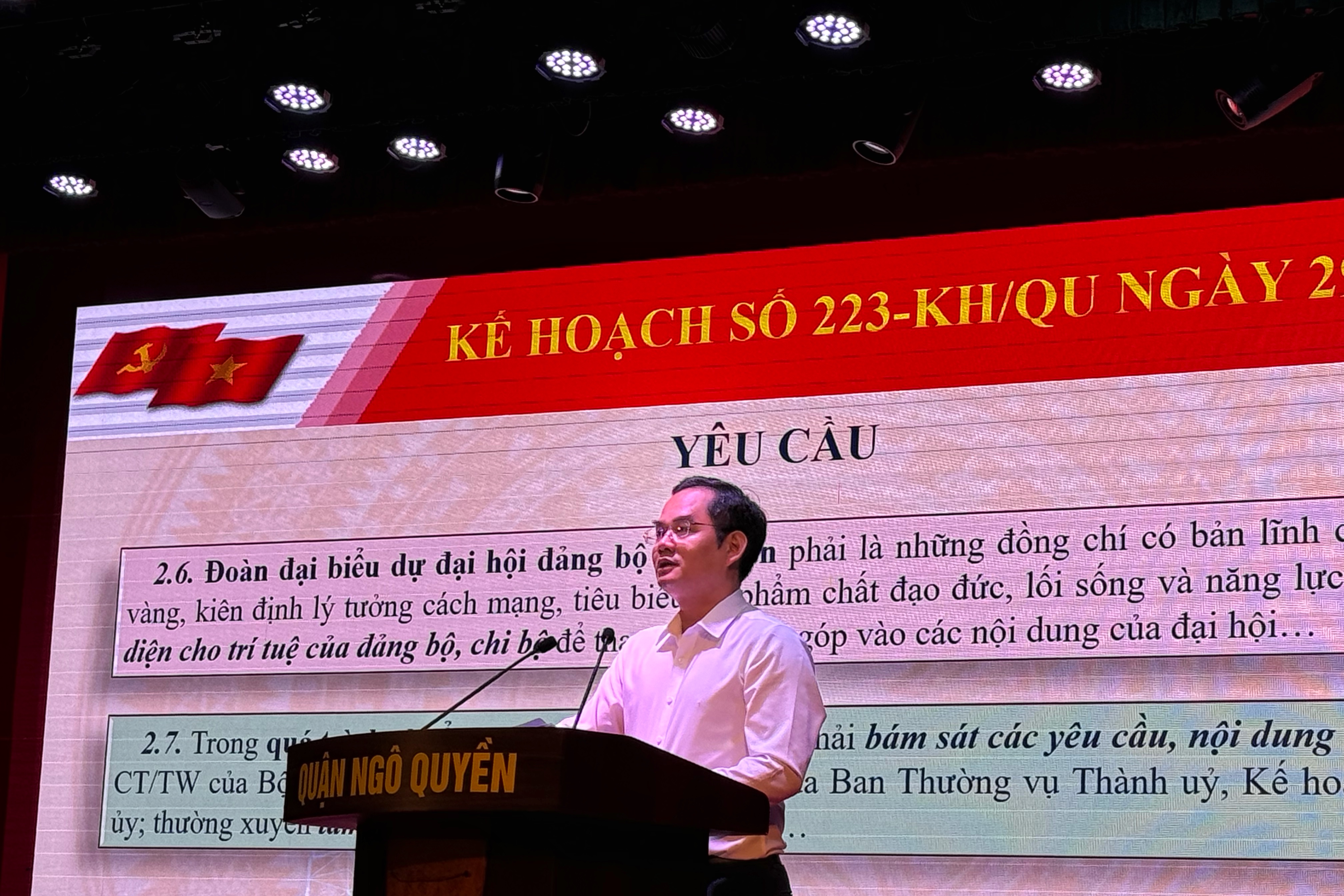 Đồng chí Trịnh Quang Trường, Phó Bí thư Thường trực Quận ủy, Chủ tịch HĐND quận Ngô Quyền quán triệt nội dung Kế hoạch số 223 của quận. Đối với chi, đảng bộ cơ sở, thời gian hoàn thành công tác chuẩn bị tổ chức đại hội trước ngày 31/3/2025, tổ chức Đại hội từ tháng 4 và hoàn thành trước 30/6/2025. Riêng với các chi, đảng bộ chọn tổ chức Đại hội điểm hoàn thành công tác chuẩn bị trước 15/2/2025, hoàn thành tổ chức Đại hội trước ngày 28/02/2025. Công tác chuẩn bị Đại hội Đảng bộ quận Ngô Quyền được thực hiện từ nay đến tháng 6/2025 và tổ chức Đại hội trong tháng 7/2025./.