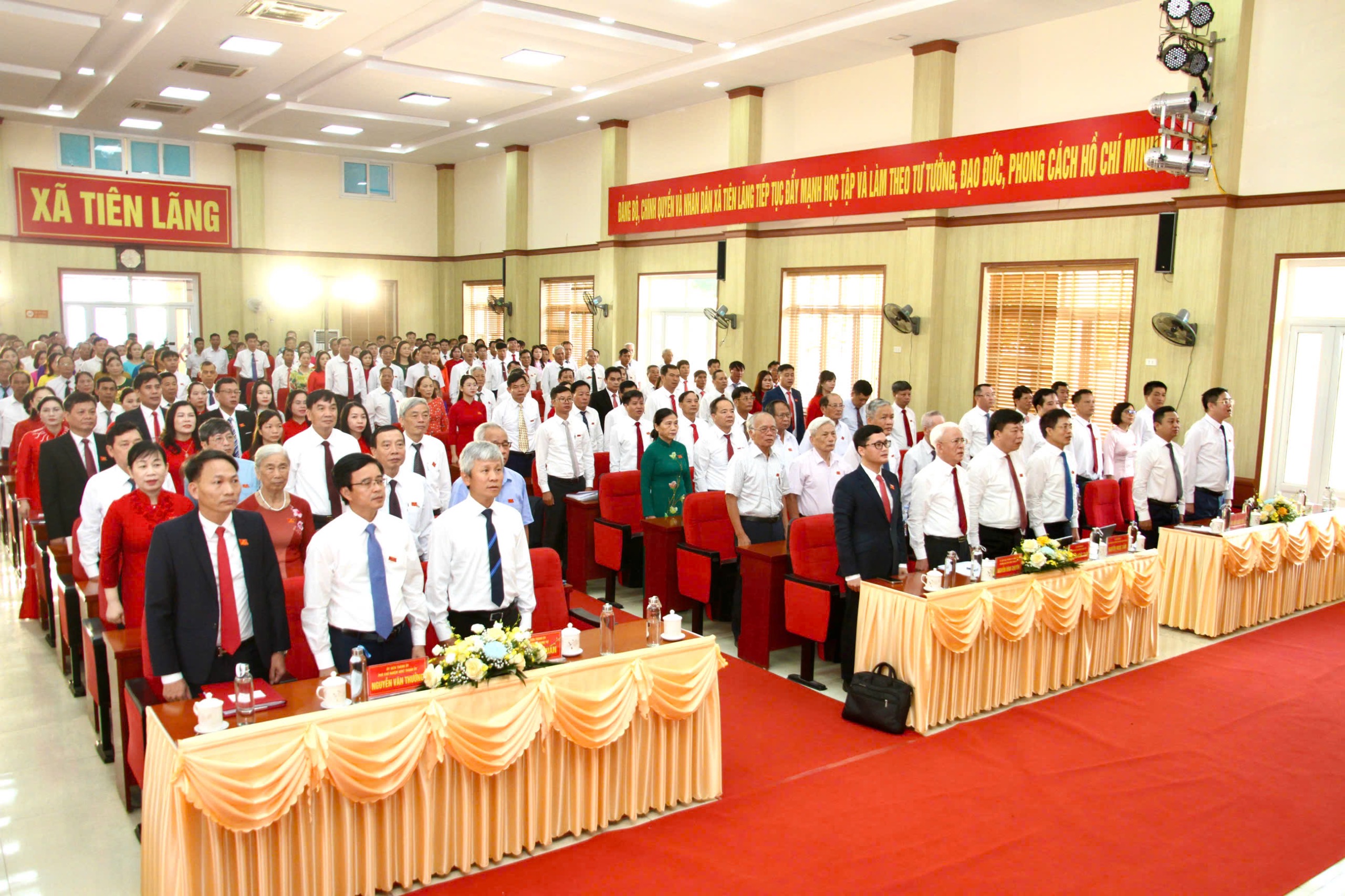 Các đại biểu làm Lễ chào cờ.Đảng bộ xã Tiên Lãng được thành lập trên cơ sở hợp nhất Đảng bộ thị trấn Tiên Lãng, xã Quyết Tiến, Tiên Thanh, Khởi Nghĩa và các chi, đảng bộ trên phạm vi địa giới 4 địa phương với diện tích 27,89 km², dân số 40.446 người; có 73 tổ chức đảng trực thuộc, 2.168 đảng viên.