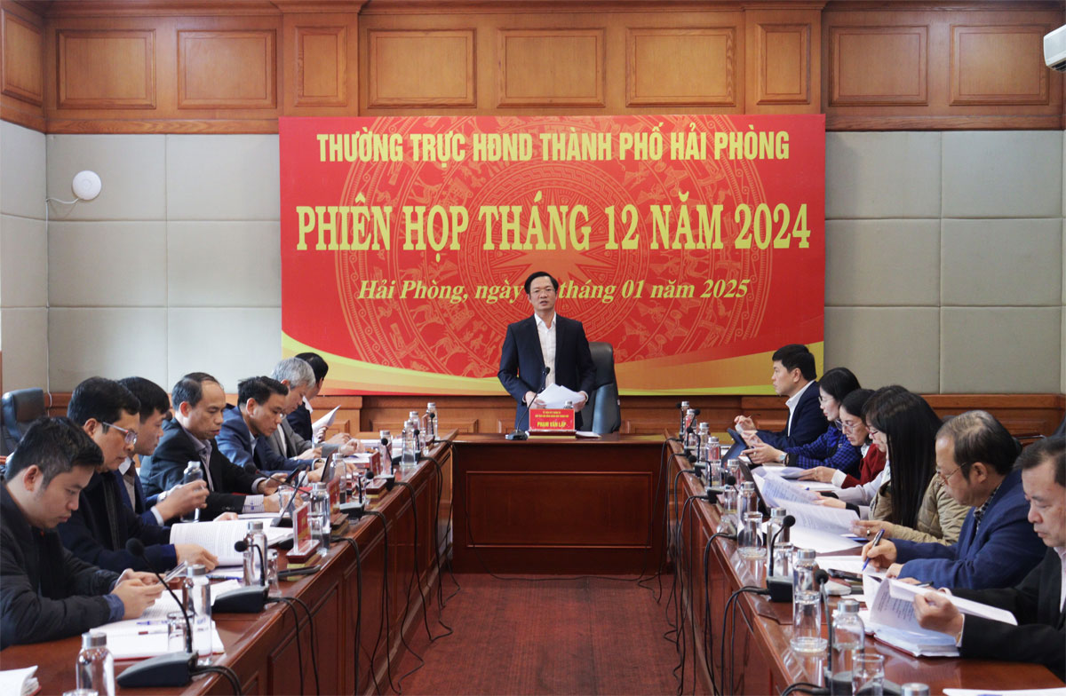 Chủ tịch HĐND thành phố Phạm Văn Lập phát biểu kết luận phiên họp.Qua nghe các ý kiến, phát biểu kết luận phiên họp, Chủ tịch HĐND thành phố Phạm Văn Lập ghi nhận, đánh giá cao những kết quả nổi bật, vai trò, đóng góp của Thường trực HĐND thành phố và các Ban, cơ quan giúp việc, góp phần vào thành công chung trong hoạt động của HĐND thành phố trong năm 2024. Chủ tịch HĐND thành phố đề nghị Văn phòng Đoàn ĐBQH và HĐND thành phố rà soát, bổ sung thêm vào báo cáo phương hướng, 7 nhiệm vụ trọng tâm và các nhiệm vụ chi tiết trong năm 2025. Trong đó, tập trung triển khai kế hoạch thực hiện các kết luận, nghị quyết của Trung ương, Quốc hội, như Kết luận số 96 của Bộ Chính trị về tiếp tục triển khai thực hiện Nghị quyết 45 về xây dựng và phát triển thành phố Hải Phòng đến năm 2030, tầm nhìn đến năm 2045, Nghị quyết số 169 của Quốc hội về tổ chức chính quyền đô thị tại thành phố Hải Phòng, Nghị quyết số 1232 của Ủy ban Thường vụ Quốc hội về sắp xếp các đơn vị hành chính cấp huyện, cấp xã tại thành phố Hải Phòng giai đoạn 2023 - 2025...
