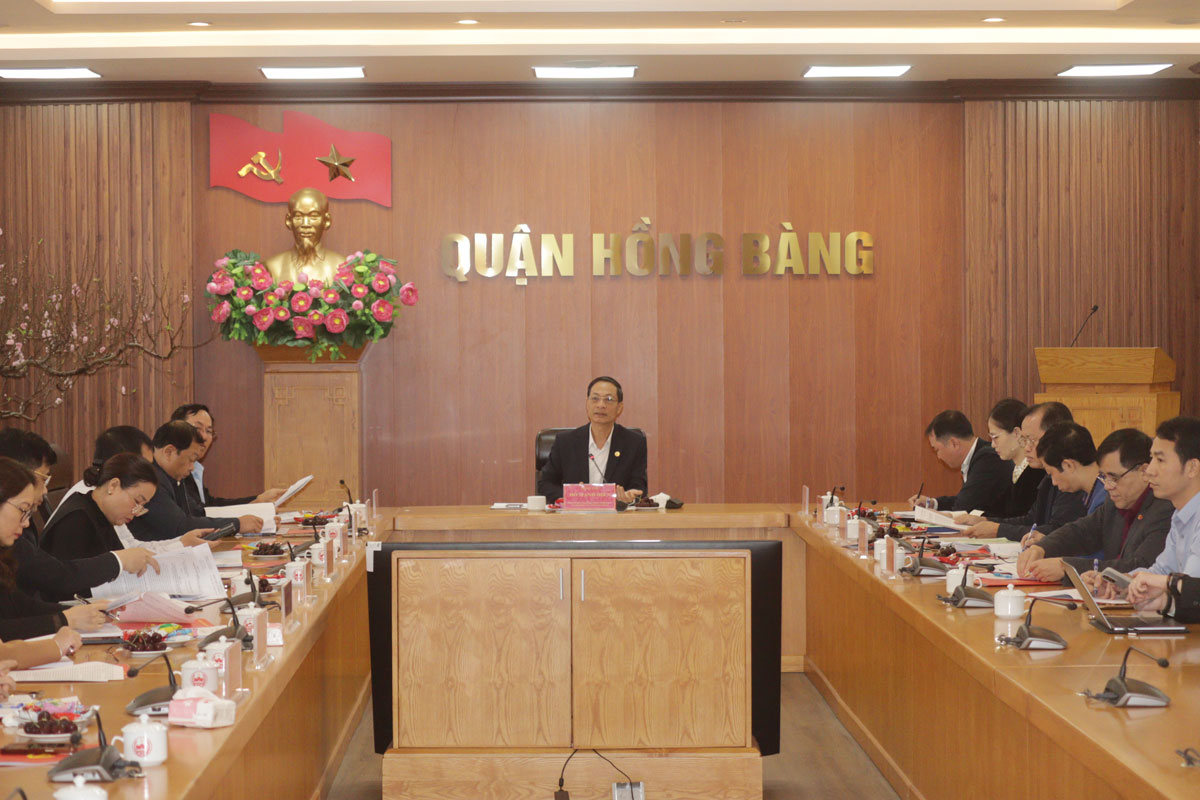 Thành viên Tổ công tác số 3 phát biểu ý kiến tại cuộc làm việc.Tại cuộc làm việc, Quận ủy Hồng Bàng đề nghị Thành ủy sớm cho chủ trương chỉ đạo, làm cơ sở để quận xây dựng các phương án nhân sự, bố trí, sắp xếp cán bộ đối với các tổ chức đảng do sắp xếp, sáp nhập; có hướng dẫn cụ thể việc tham gia cấp ủy, ban thường vụ cấp ủy và phương án nhân sự lãnh đạo chính quyền cấp quận, phường trong nhiệm kỳ 2025 - 2030, 2026 - 2031; hướng dẫn cụ thể đối với các đơn vị tổ chức Đại hội nhưng không bầu Bí thư trực tiếp...
