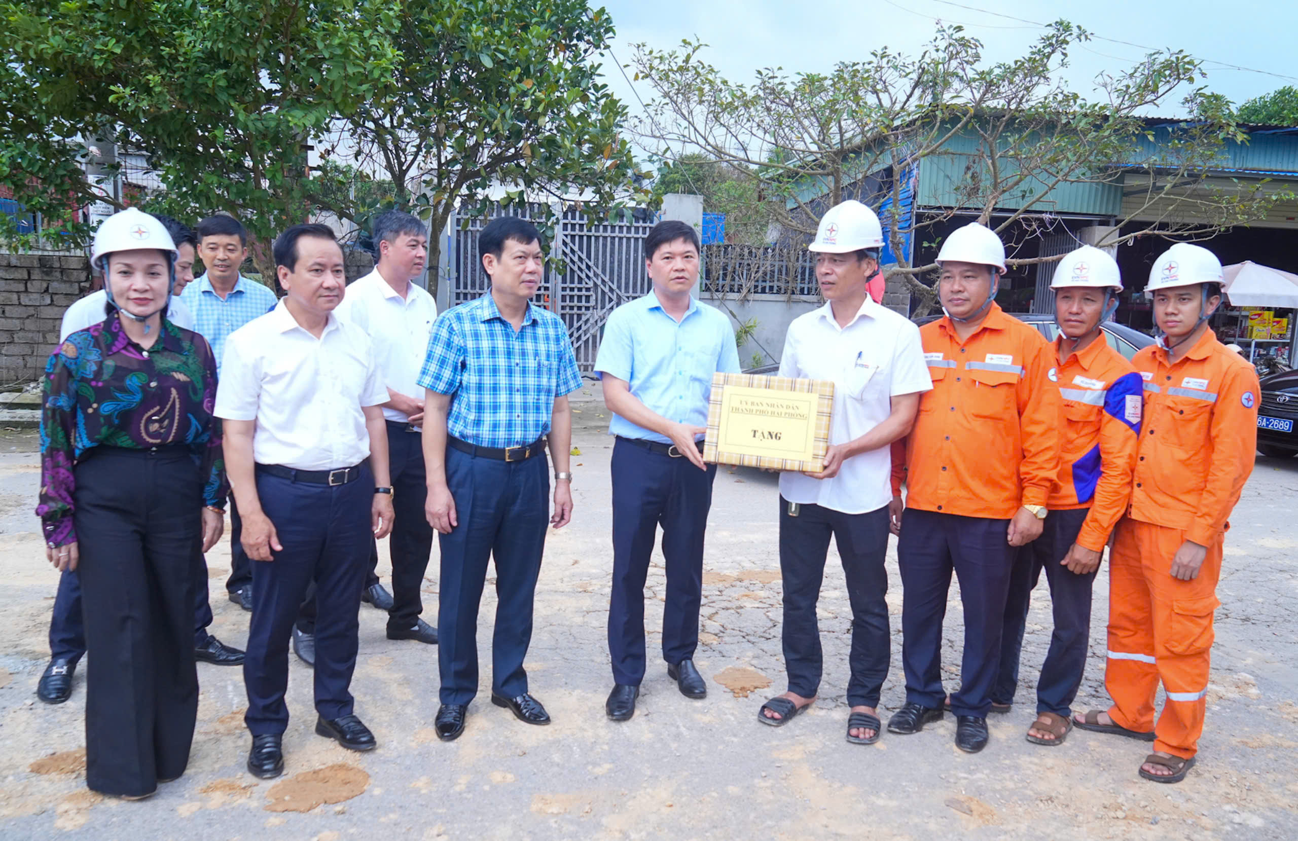 Phó Chủ tịch UBND thành phố Hoàng Minh Cường tặng quà đơn vị đang làm nhiệm vụ sửa chữa khắc phục các công trình điện trên địa bàn xã Kỳ Sơn, huyện Thuỷ Nguyên.Kiểm tra, trao quà động viên các đơn vị đang làm nhiệm vụ sửa chữa khắc phục các công trình điện trên địa bàn xã Kỳ Sơn, huyện Thuỷ Nguyên, Phó Chủ tịch UBND thành phố Hoàng Minhh Cường ghi nhận những cố gắng của cán bộ công nhân viên ngành điện đang nỗ lực tập trung huy động lực lượng, thi công sửa chữa đường điện trong điều kiện thời tiết bất lợi, cố gắng cấp điện trở lại trong thời gian sớm nhất.