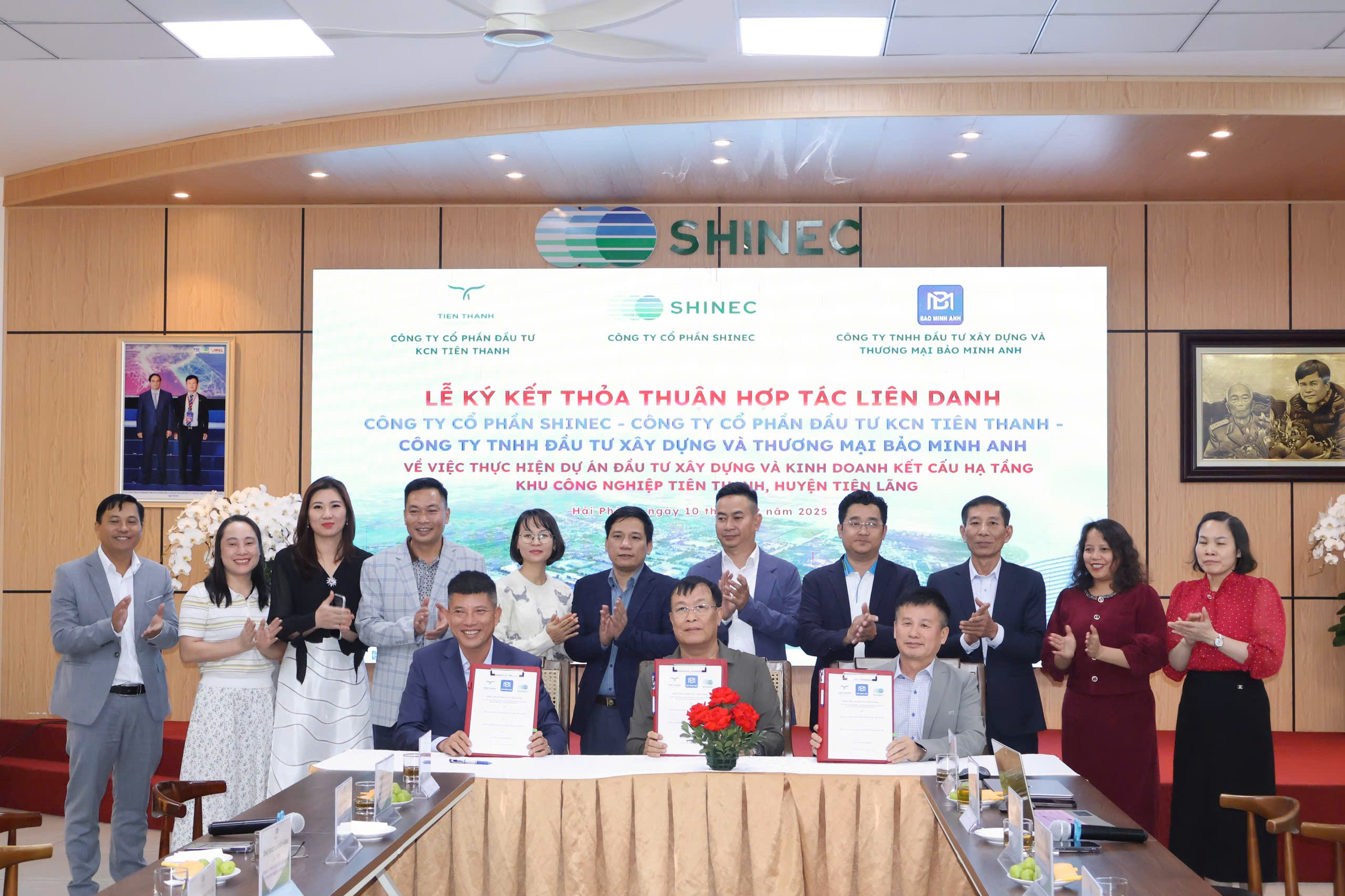 Lãnh đạo Công ty CP Shinec và Công ty CP đầu tư KCN Tiên Thanh ký kết thỏa thuận hợp tác trong phát triển KCN sinh thái Tiên Thanh.Theo Biên bản thỏa thuận hợp tác, Shinec và Tiên Thanh sẽ phối hợp triển khai dự án KCN theo mô hình sinh thái – tuần hoàn – bền vững, phù hợp định hướng tăng trưởng xanh của thành phố Hải Phòng.