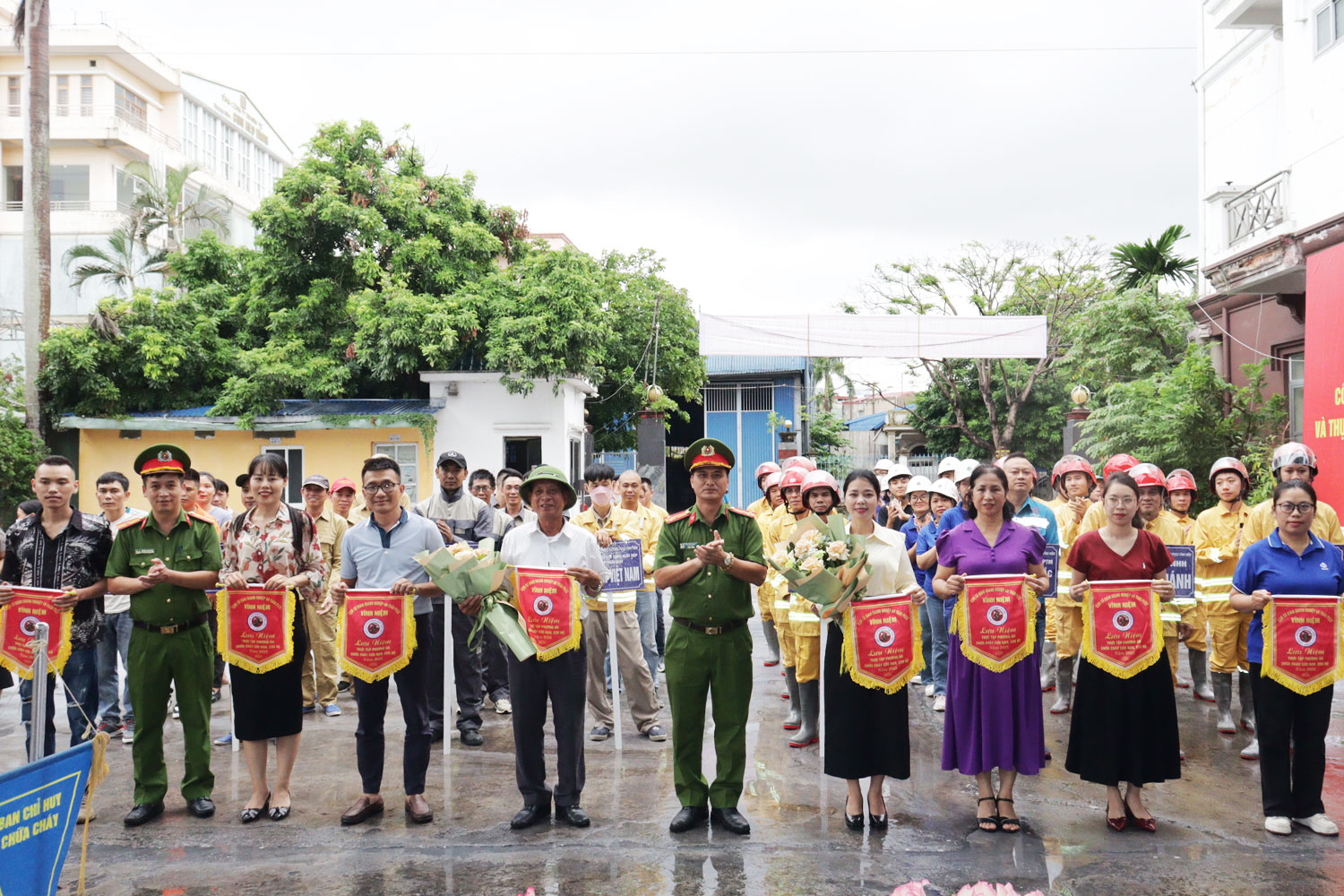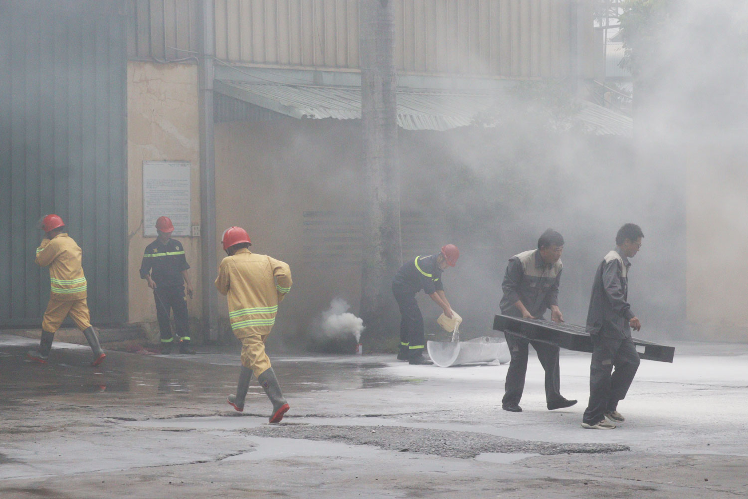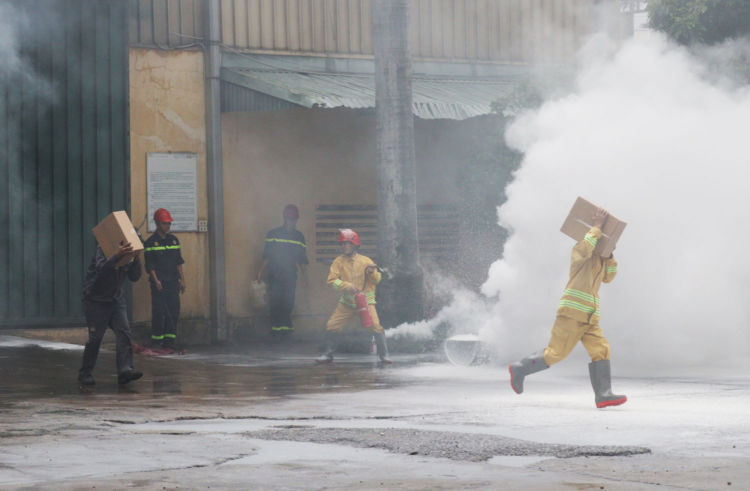 Trao Cờ lưu niệm cho các đơn vị trong Cụm cơ quan doanh nghiệp an toàn phòng cháy chữa cháy Cụm công nghiệp Vĩnh Niệm.Phương án giả định là chọn tình huống thực tập cháy tại xưởng sản xuất của Nhà máy sản xuất thức ăn gia súc Con Heo Vàng thuộc Công ty TNHH thương mại VIC. Nguyên nhân gây cháy do sự cố thiết bị điện, thời gian cháy tự do là 10 phút. Khả năng cháy lan, do sự cố điện phát sinh cháy, bén vào vật liệu dễ cháy gần đó (vỏ bao bì, bột cám, nhựa, cao su…) làm đám cháy phát triển mạnh. Lực lượng cơ sở lúng túng, hoảng loạn, sử dụng bình chữa cháy nhưng không hiệu quả, làm đám cháy phát triển nhanh, cháy lan sang các khu vực xung quanh. Có 3 nạn nhân là công nhân trong xưởng bị mắc kẹt…