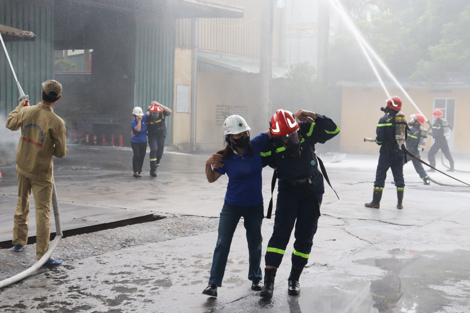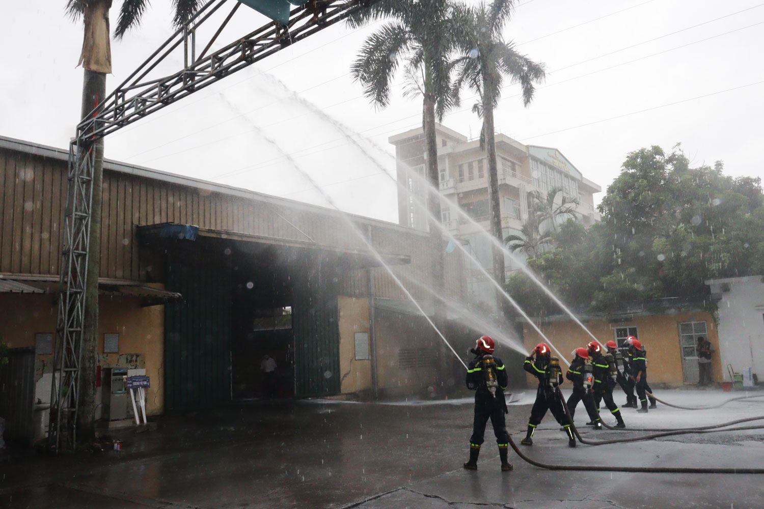 Thực tập phương án chữa cháy và cứu nạn, cứu hộ năm 2025 tại Cụm công nghiệp Vĩnh Niệm (phường An Biên)