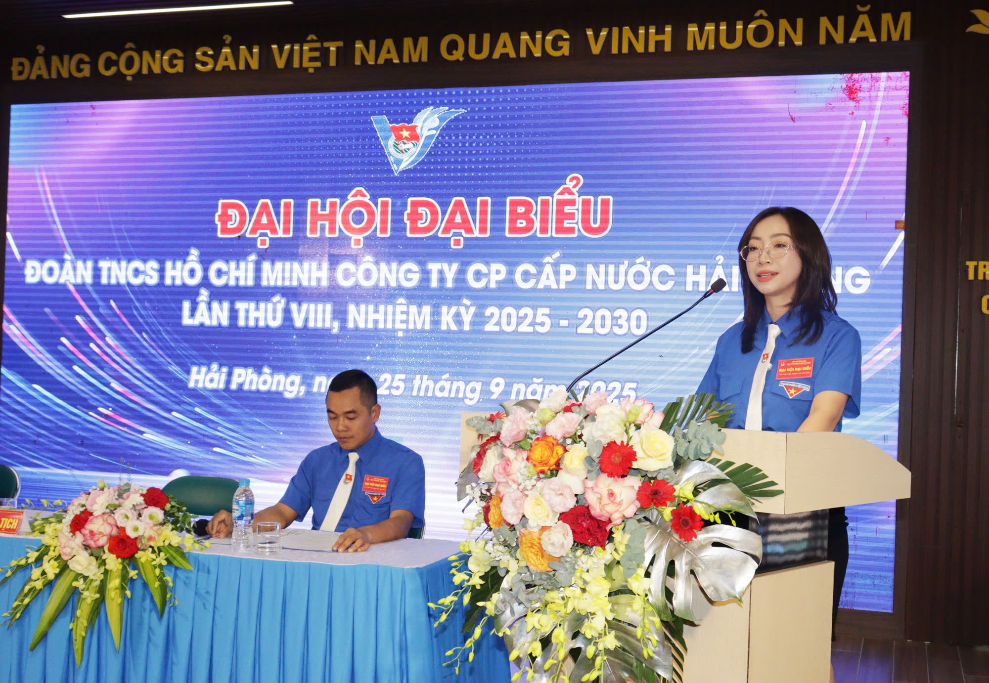 Quang cảnh Đại hội.Giai đoạn 2022 - 2025, Đoàn TNCS Hồ Chí Minh Công ty CP Cấp nước Hải Phòng đã phát huy tinh thần xung kích của tuổi trẻ, bám sát mục tiêu, nhiệm vụ của Công ty, triển khai hiệu quả các hoạt động công tác Đoàn và phong trào thanh niên, đạt được những kết quả nổi bật. Với thông điệp “Bảo vệ nguồn nước là bảo vệ chính mình”, Đoàn Thanh niên đã tổ chức chương trình đạp xe công nghệ số qua các tuyến phố chính, với các khẩu hiệu tuyên truyền tiết kiệm và bảo vệ nguồn nước; phối hợp với các trường học tổ chức cho học sinh, sinh viên tham quan Nhà máy nước An Dương, tìm hiểu quy trình sản xuất nước sạch, qua đó bồi đắp ý thức tiết kiệm và trân trọng nguồn tài nguyên quý giá.