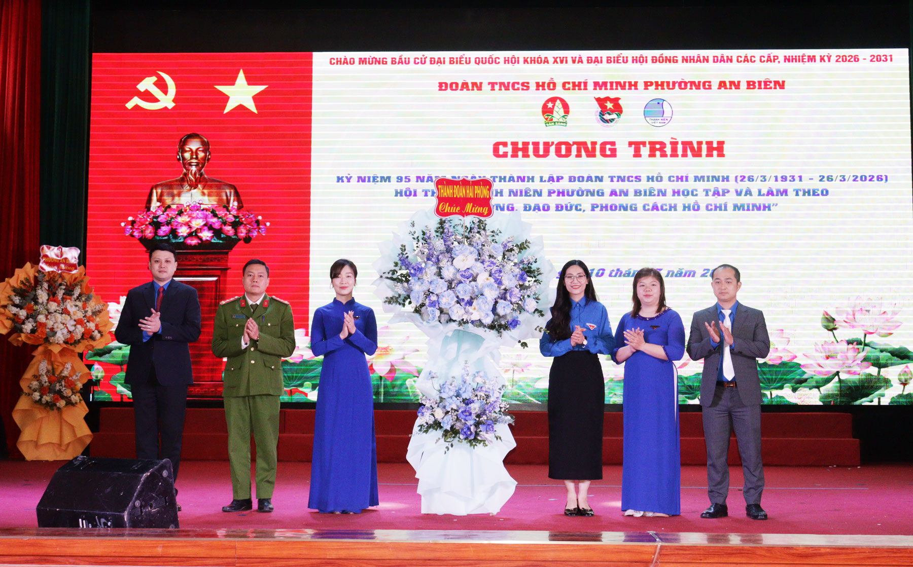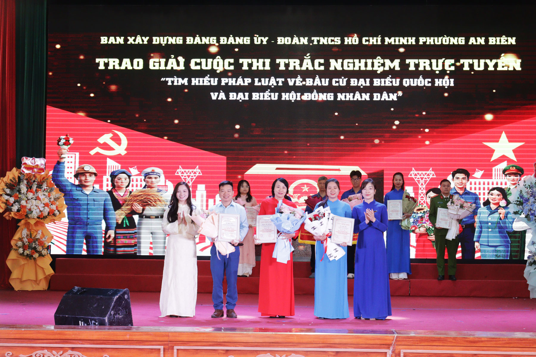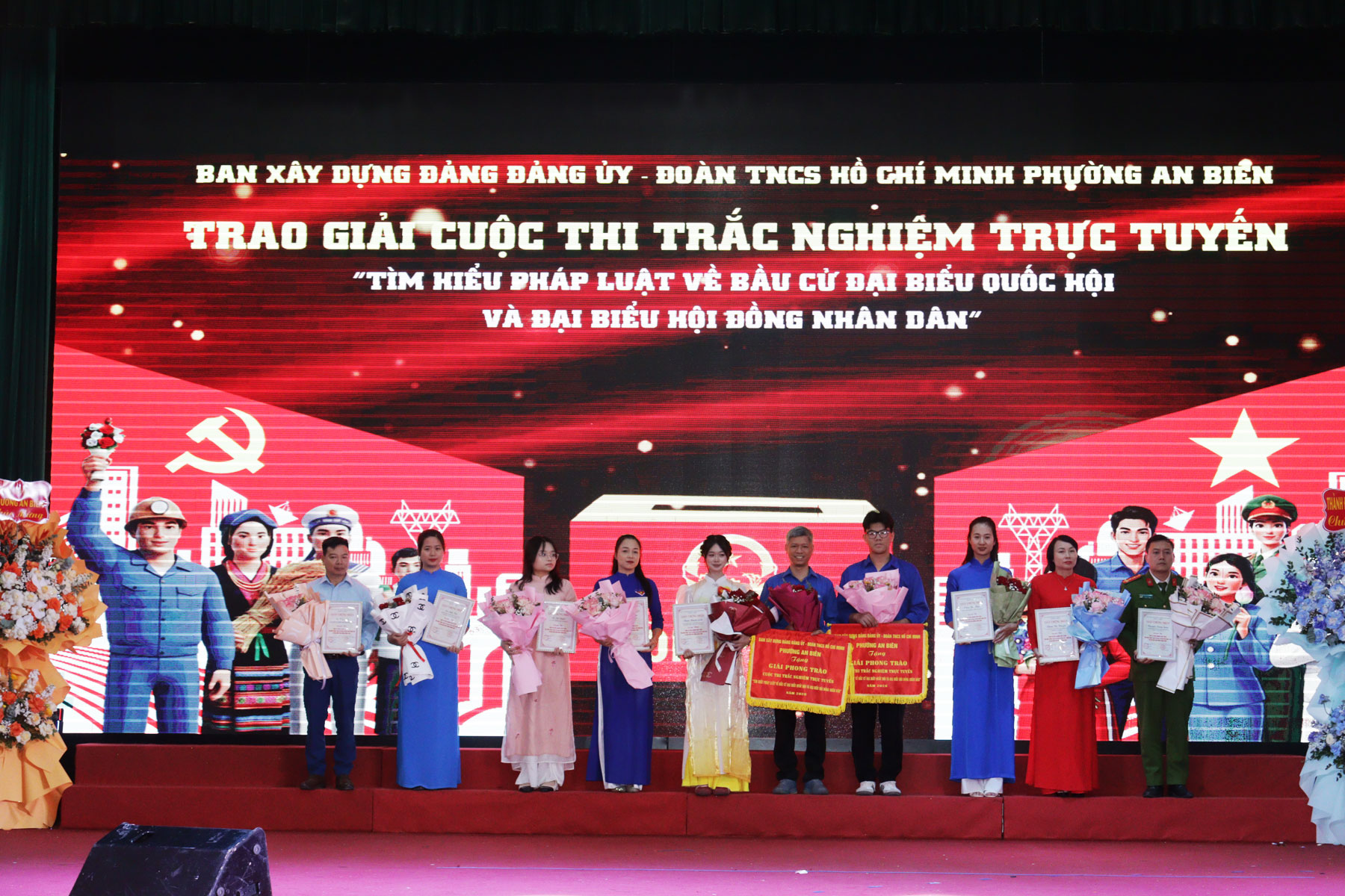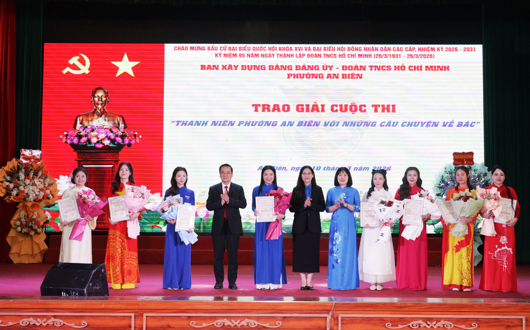 Tặng hoa cho các thí sinh tham gia Hội thi “Thanh niên phường An Biên học tập và làm theo tư tưởng, đạo đức, phong cách Hồ Chí Minh”.Hội thi “Thanh niên phường An Biên học tập và làm theo tư tưởng, đạo đức, phong cách Hồ Chí Minh” nhằm tạo đợt sinh hoạt chính trị sâu rộng, giúp cán bộ, đoàn viên thanh niên nhận thức sâu sắc hơn về những nội dung cơ bản và giá trị to lớn của tư tưởng, đạo đức, phong cách Hồ Chí Minh. Hội thi được diễn ra từ ngày 2/2/2026 với sự tham gia của 18 thí sinh đến từ các cơ sở Đoàn - Hội trực thuộc trên địa bàn phường và đã lựa chọn được 8 thí sinh tham gia tranh tài tại Vòng chung kết hôm nay.